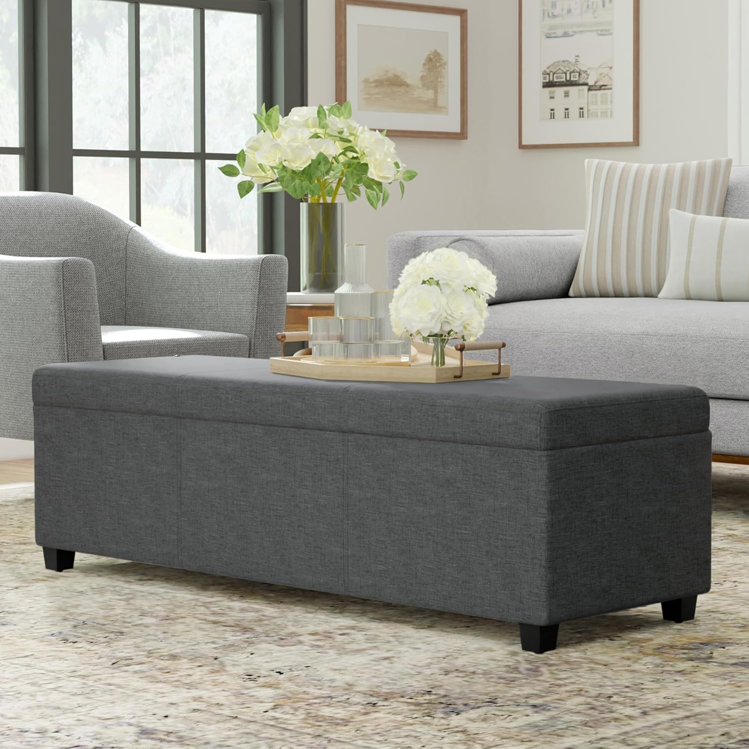 - Multi-functional ottoman can be used in bedroom, living room, family room, hallway as an entryway bench, foot stool, accent furniture or provide additional sitting