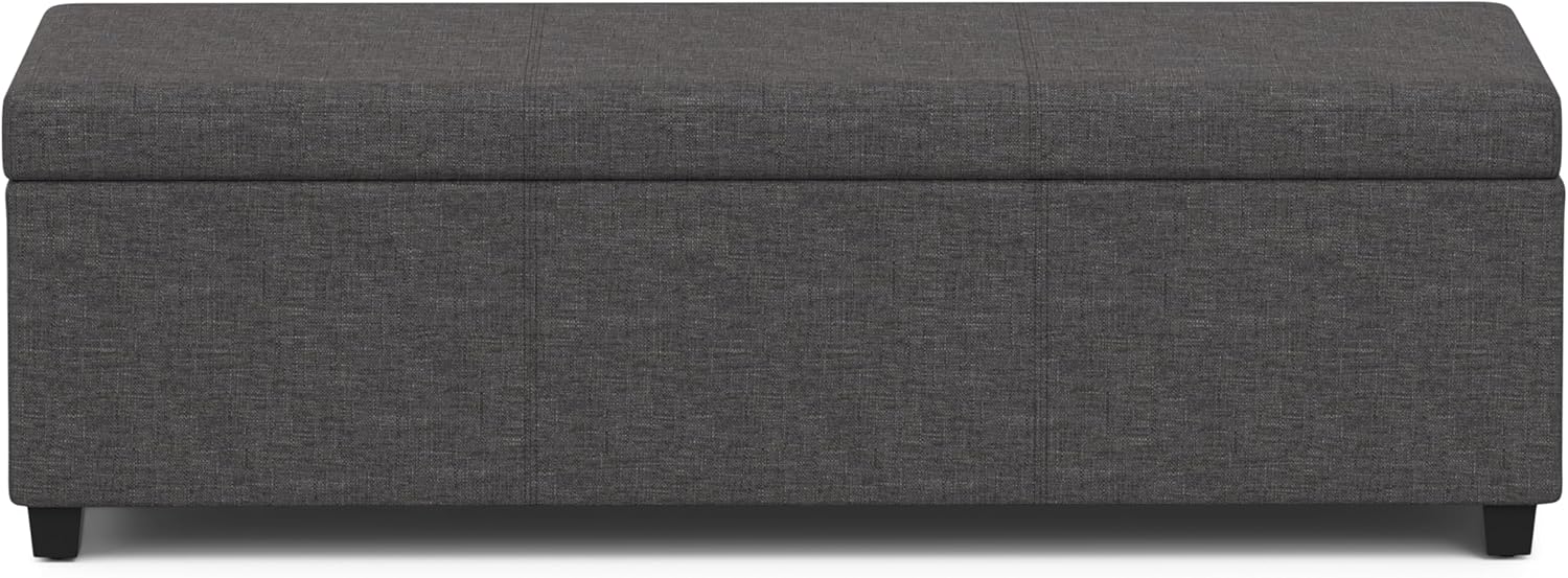 SIMPLIHOME Avalon 54 inch Wide Contemporary Rectangle Extra Large Storage Ottoman Bench in Slate Grey Polyester linen fabric, Assembled, For the Living Room, Entryway and Family Room