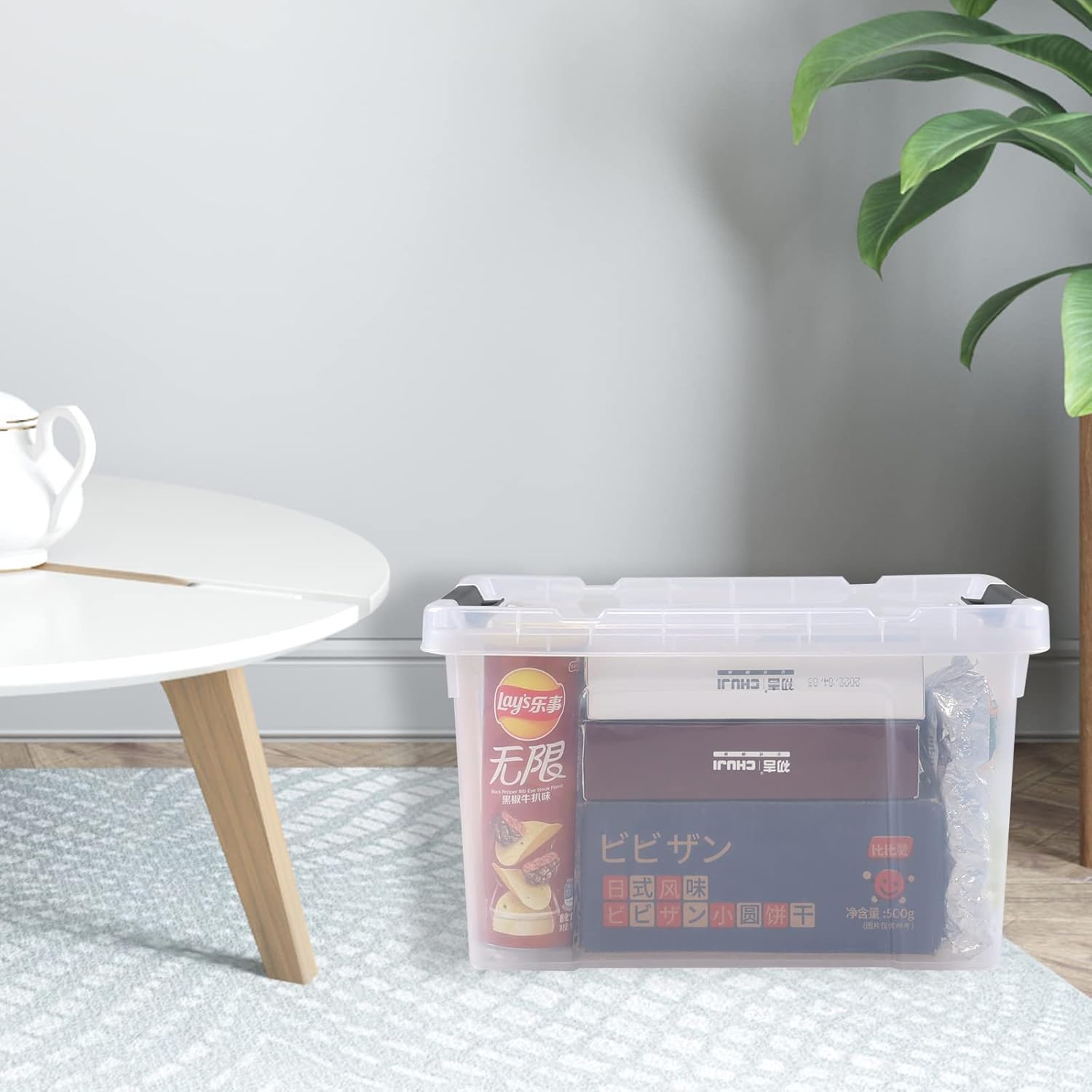 4 Pack 22 L Clear Plastic Storage Box with Wheels, Latch Storage Bin with Lid