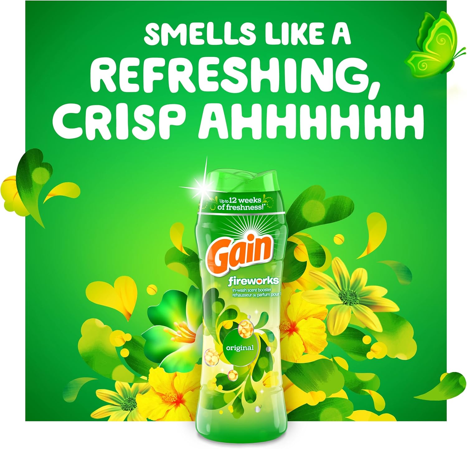 - Gain Fireworks In-Wash Scent Booster gives your laundry up to 12 weeks of freshness, from wash until wear
