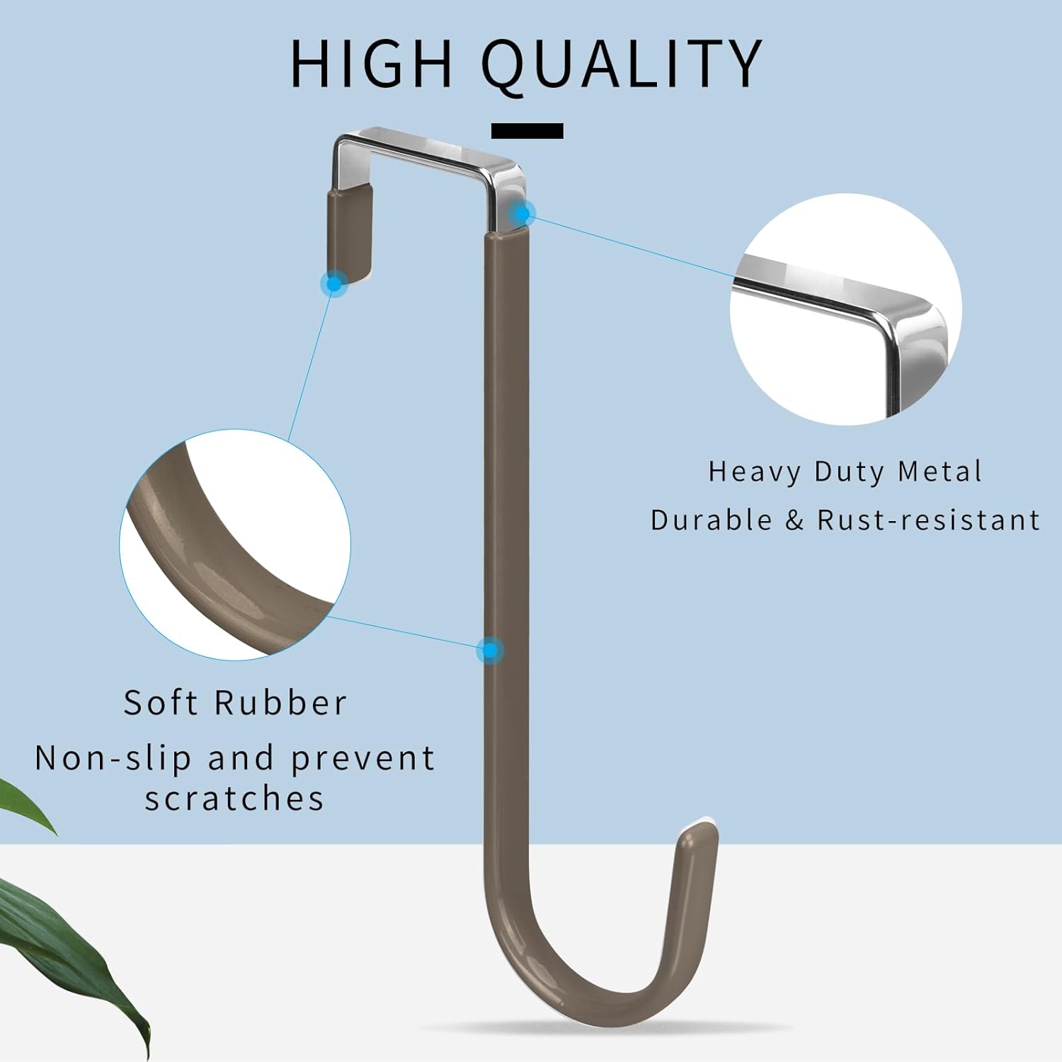 - Soft Rubber: The door organizer hooks are built with soft rubber, non-slip and smooth surface keep the hooks in place without swinging and protect the doors or clothing from scratch