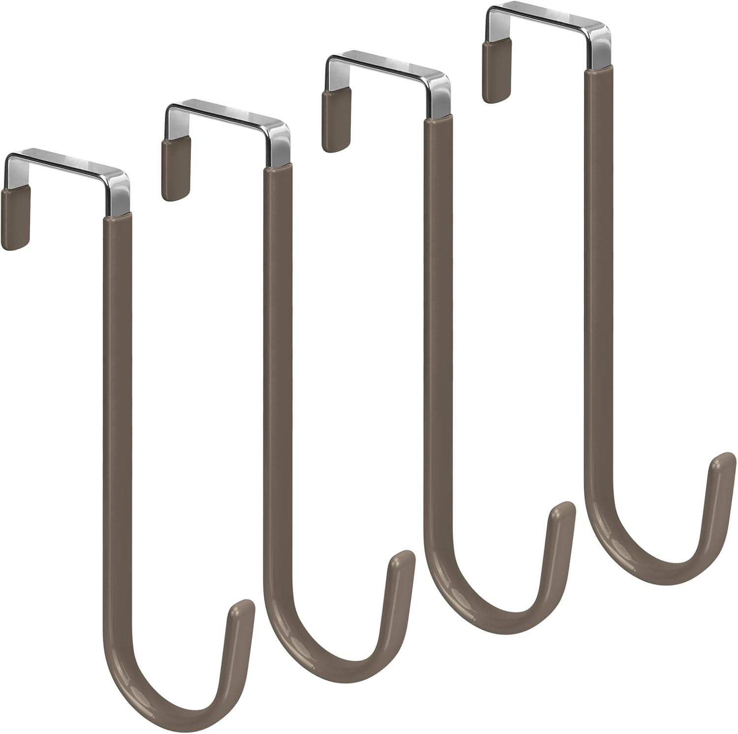FYY Over The Door Hooks, 4 Pack Upgraded Long Door Hangers Hooks with Rubber Prevent Scratches Heavy Duty Organizer Hooks for Hanging Clothes, Towels, Hats, Coats, Bags Brown