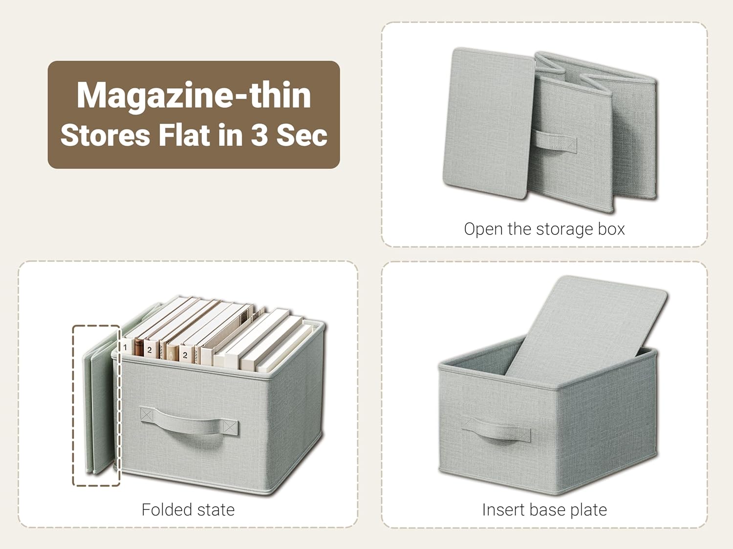 - EASY TO ASSEMBLE & COLLAPSIBLE: Simply slide the PP panel into the bottom, and the fabric storage bin is ready to use. When not in use, these bins can be easily folded and stored away, saving space.