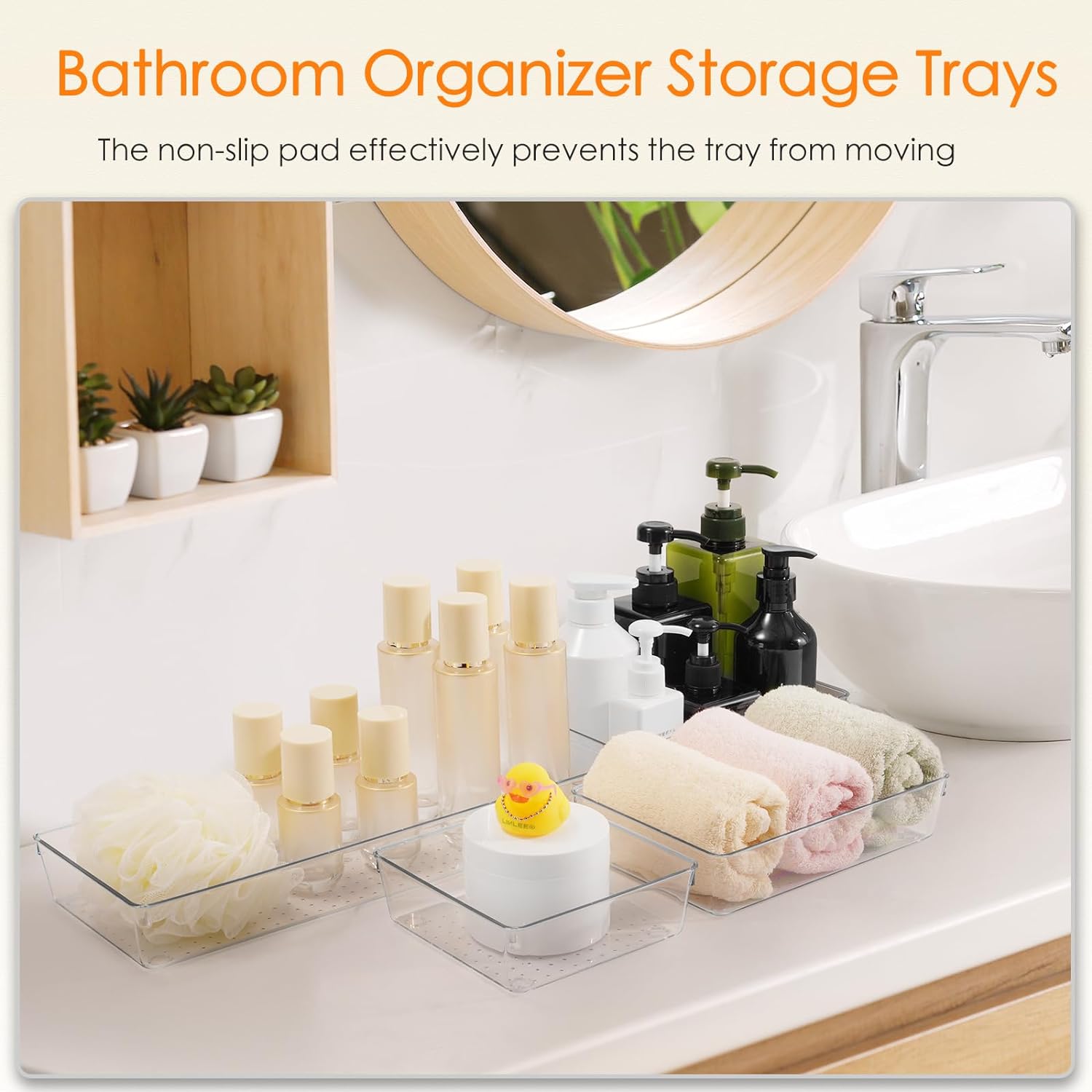 - Non-Slip Design: Simply glue silicone non-slip pads to the bottom of the plastic tray to securely hold the bathroom organizers in place. No need to worry about moving or sliding when opening and closing drawers