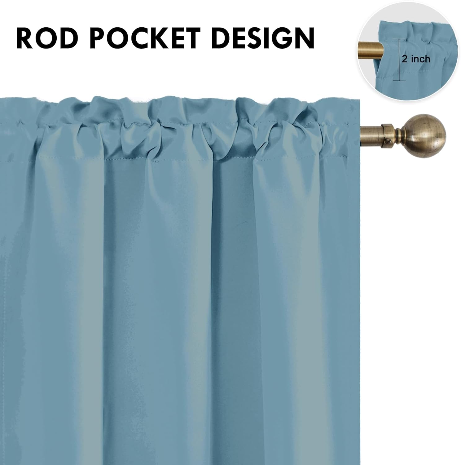 DWCN Blackout Curtains for Living Room Thermal Insulated, Energy Saving & Noise Reducing Bedroom Curtains, Stone Blue, W 42x L 54 Inch, Set of 2 Rod Pocket Curtain Panels