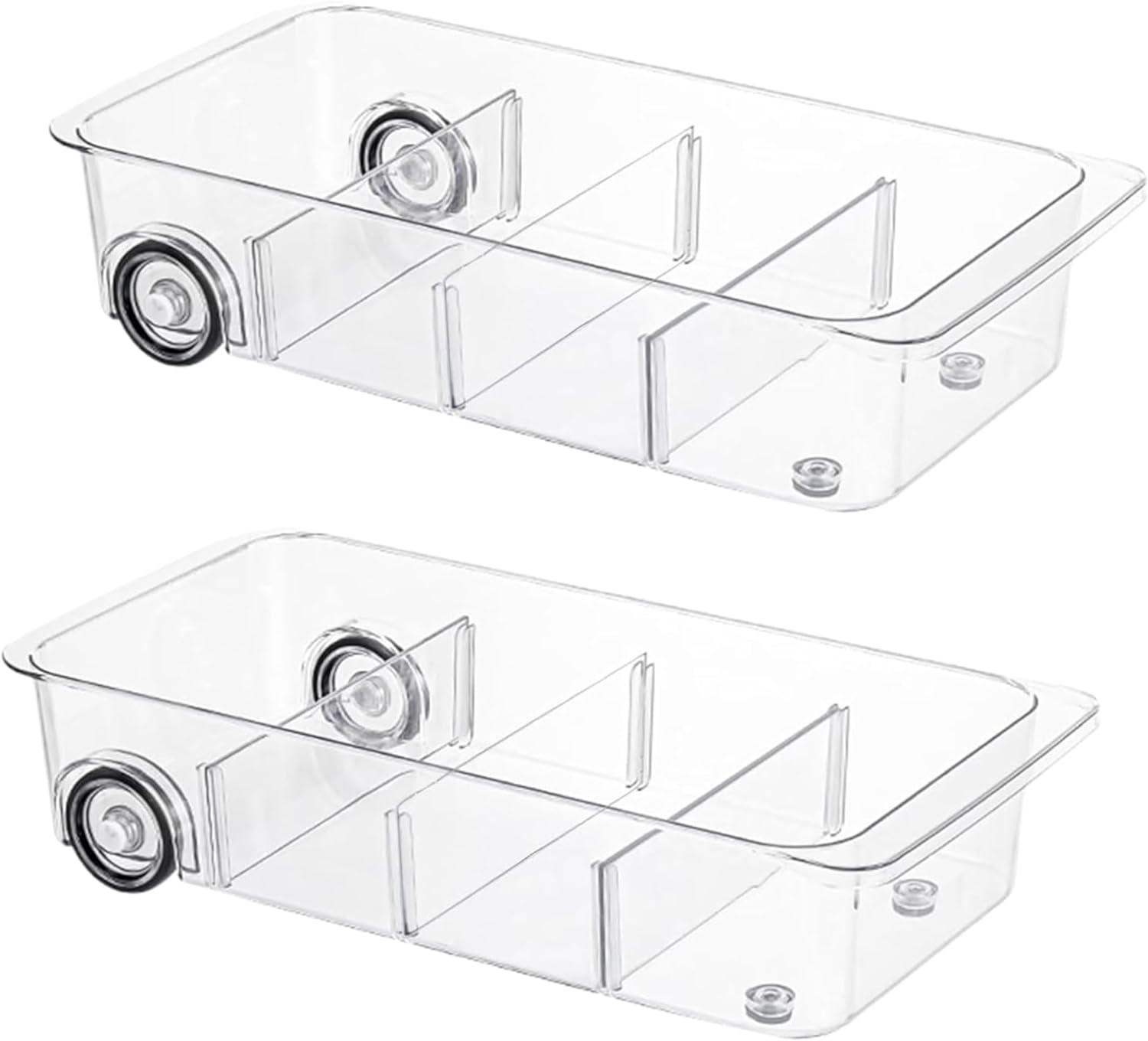 - Amazing Details:Fits standard refrigerators, Measures 15.35" D x 7.9" W x 3.54" H; Clear storage drawers are made of PET heavy plastic, the thickness is 2.5 mm; Clean Organizing Bins on Wheels by hand with soap and water