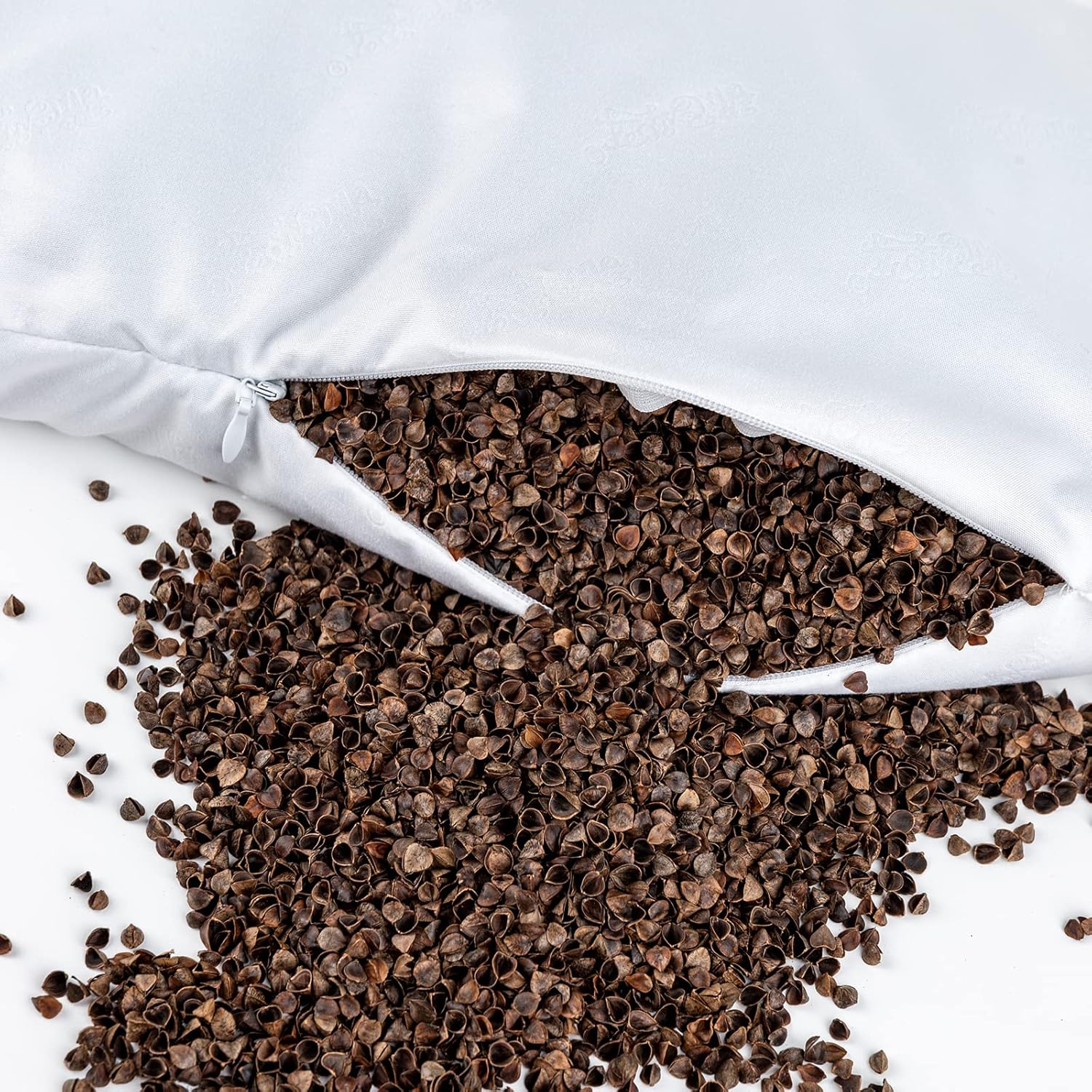 - QUALITY MATERIAL: Premium buckwheat hulls,clean and plump,warm in winter and cool in summer,offer the firm and comfy supporting to the neck curve.That can help to relieve neck pain and improve sleep.The pillow cover is made of high quality heavy weight soft quilted jacquard fabric, which will exhibit textured and soft touch, not only thick and durable but also breathable and cozy.