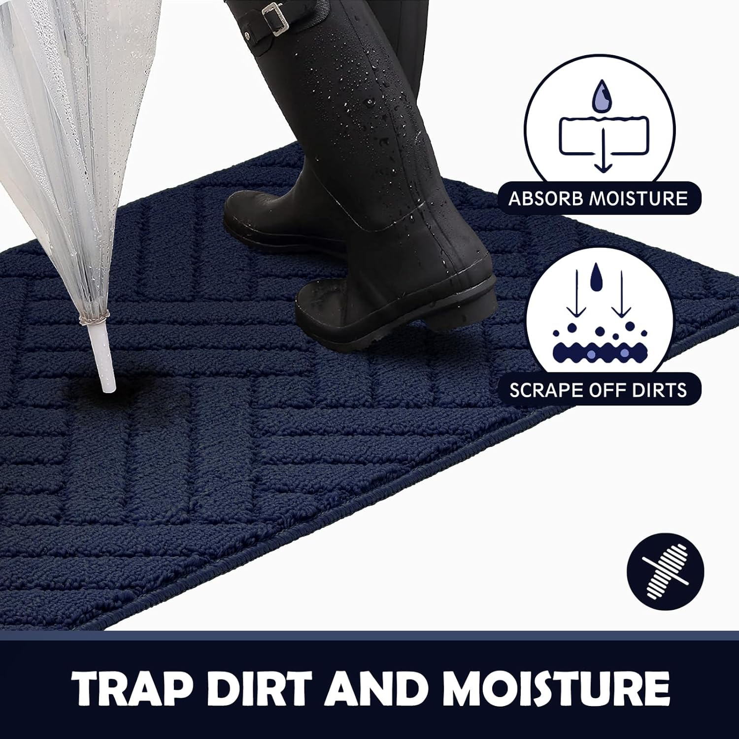 - KEEP YOUR FLOORS CLEANE AND DRY: Our Indoor Doormat was designed with double layer technology and irregularity carpet surface design. It is more efficient to absorb water and catch mud and moisture from muddy boots or petโs paws. No pressure, keep your home cleaner and more beautiful