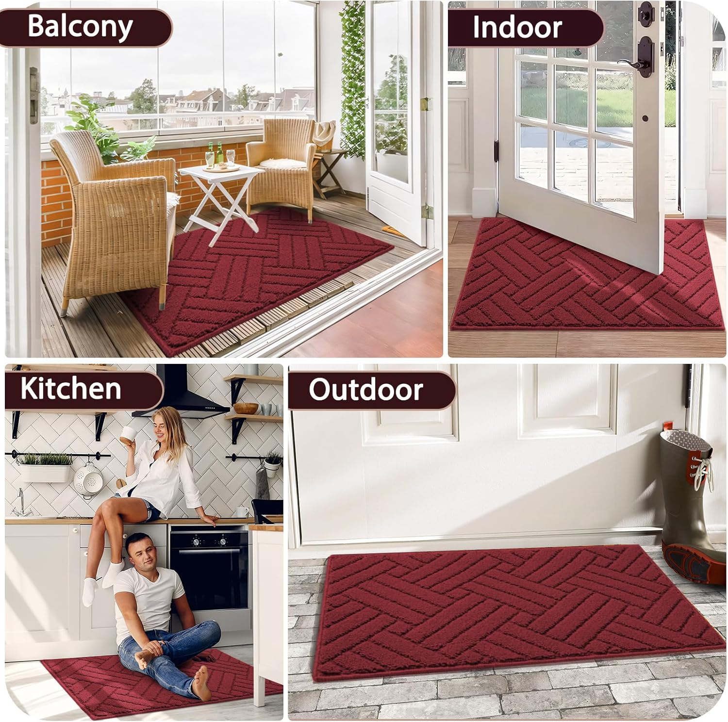 Door Mat Indoor Doormat, Entryway Rug Door Mats Non-Slip Rubber Backing, Low-Profile Entrance Rugs, Absorbent Resist Dirt Doormats Inside Floor Door mat for Entryway Red 24"x36"