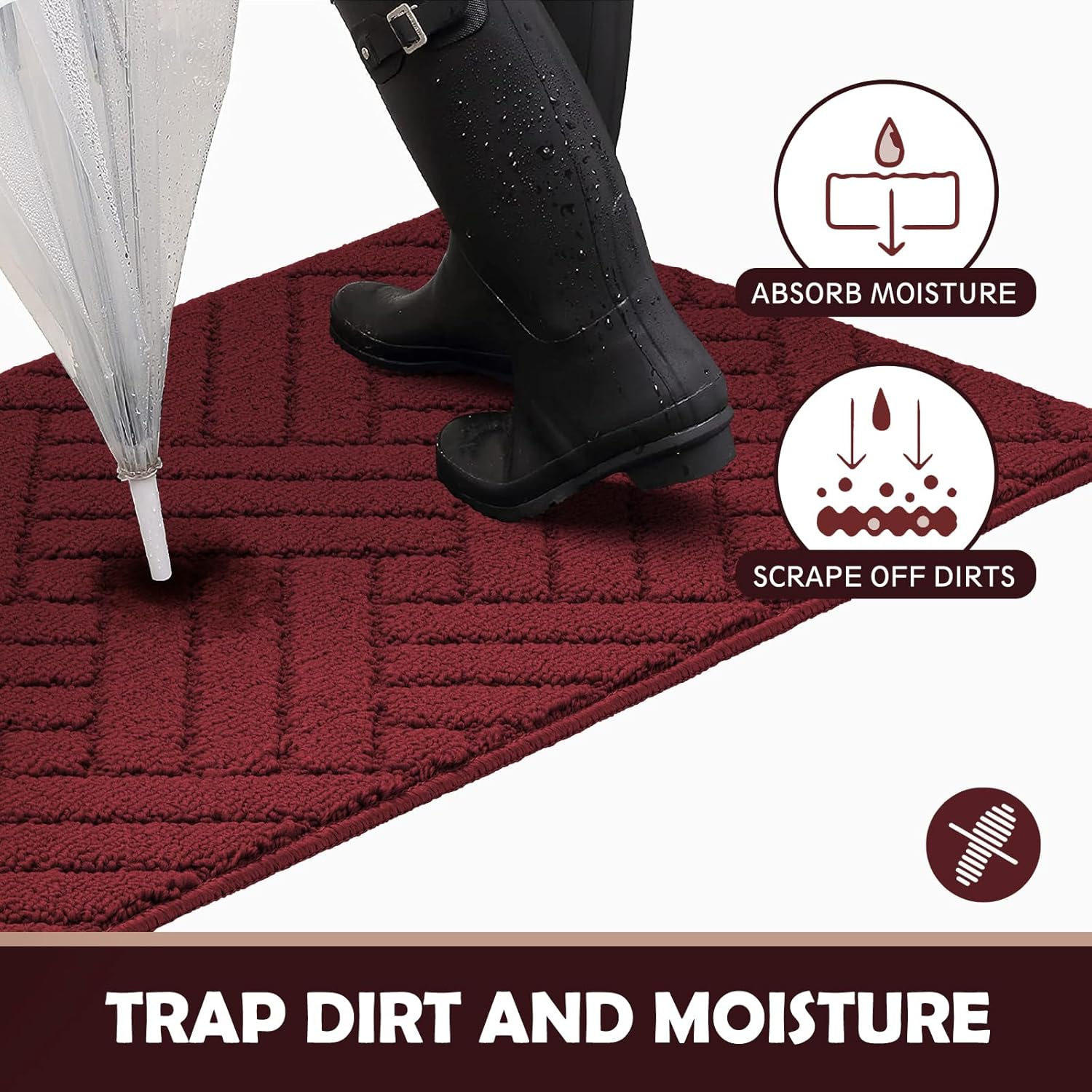 - KEEP YOUR FLOORS CLEANE AND DRY: Our Indoor Doormat was designed with double layer technology and irregularity carpet surface design. It is more efficient to absorb water and catch mud and moisture from muddy boots or petโs paws. No pressure, keep your home cleaner and more beautiful