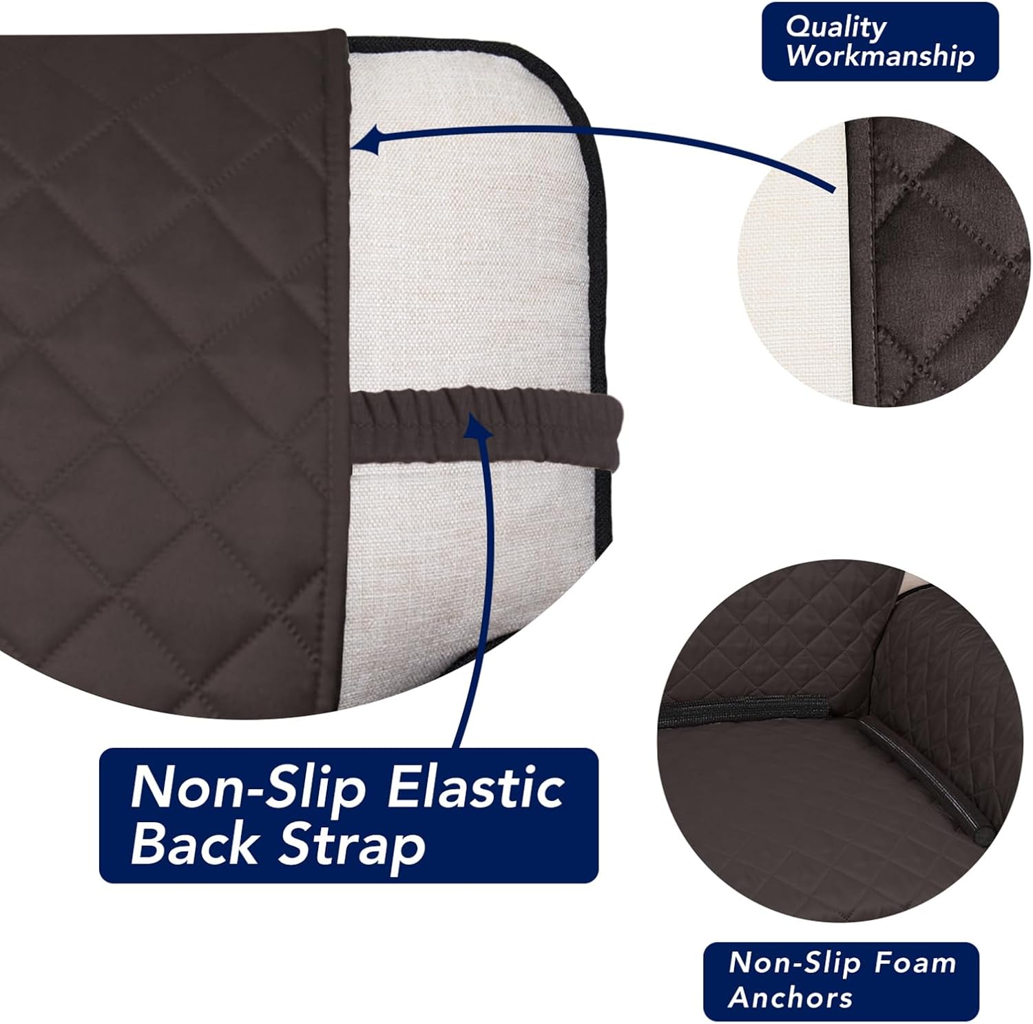 - The reversible sofa cover that stays in place: Our sofa couch cover for dogs and pets features a reversible design (dual color). Our non-slip sofa furniture slip covers also feature non slip foam anchors and Feature elastic straps to ensure they will stay tight with no snag, shifting or slipping .