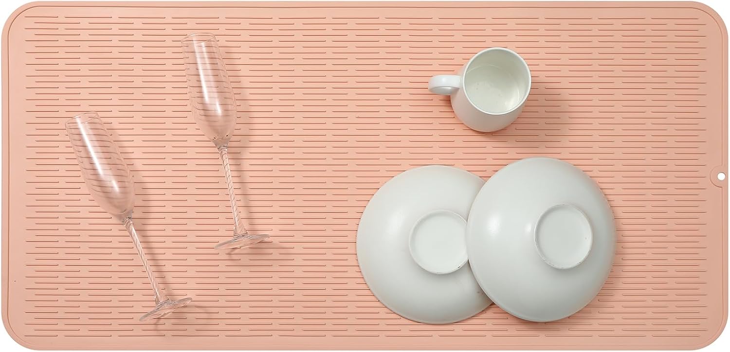 Silicone Dish Drying Mat for Multiple Usage,Easy clean,Eco-friendly,Heat-resistant Silicone Mat for Kitchen Counter or Sink,Refrigerator or Drawer Liner Pink 5XL 36inches x 18inches