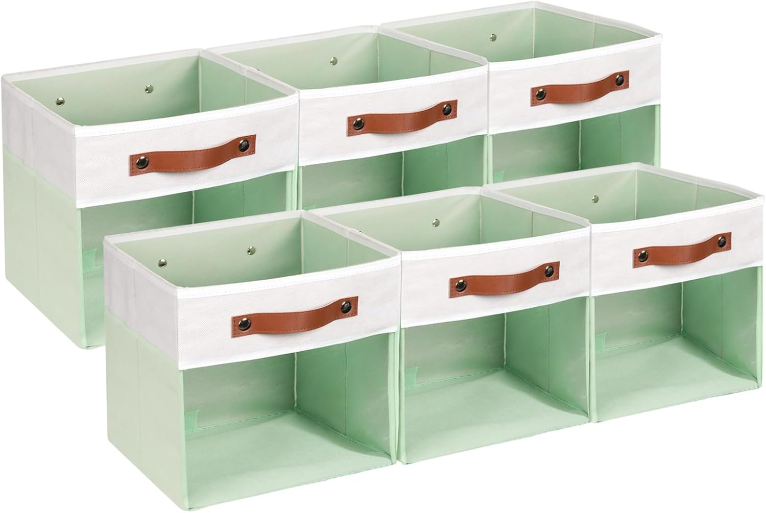 HNZIGE Clear Storage Cubes Bins 11 x 11, Fabric Storage Cube Bins for Storage Organizer,Shelf Storage Bin for Organizing, Cubby Foldable Cube Organizer Bin for Storage Blanket Home(White Green 6PCS)