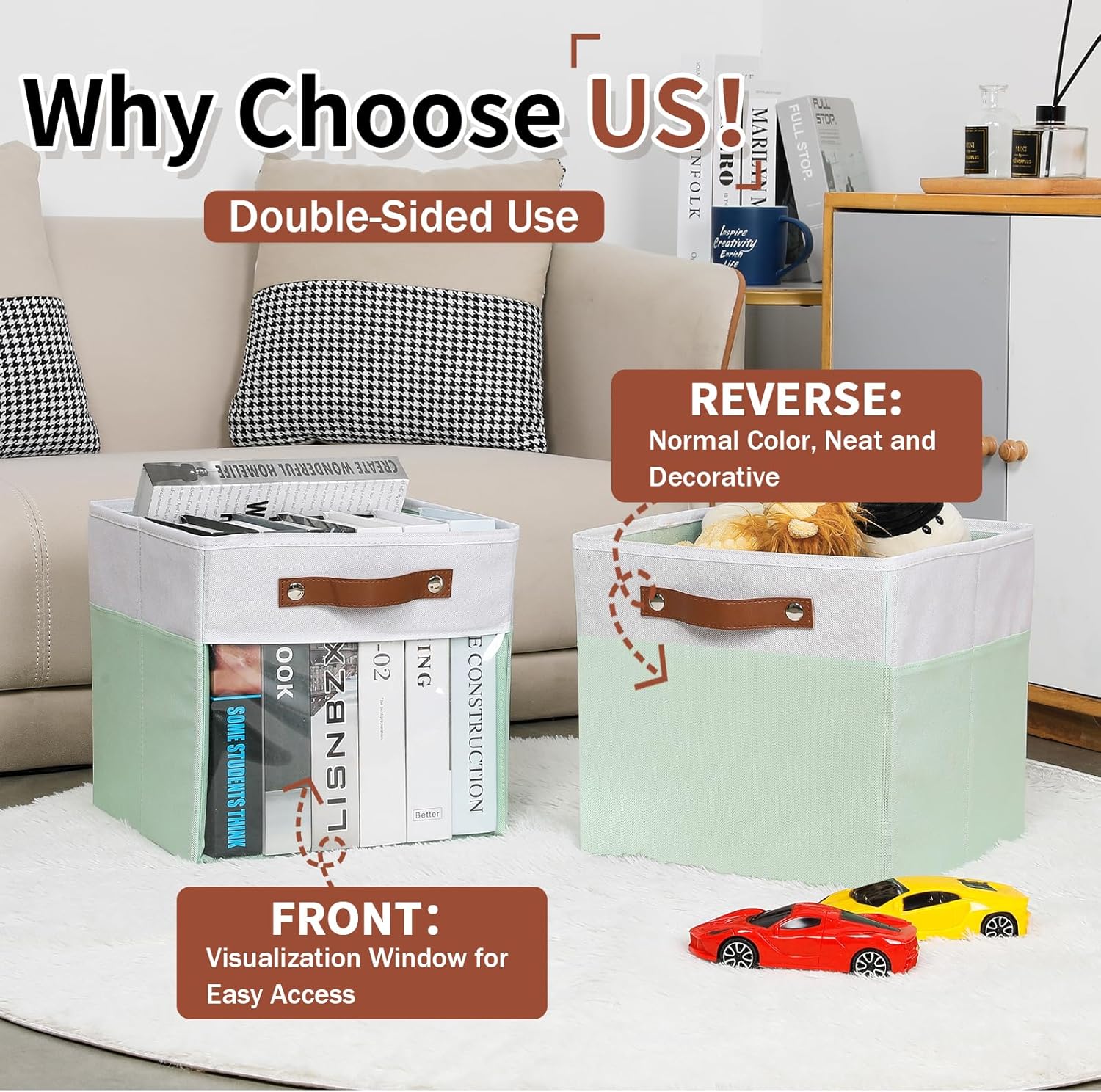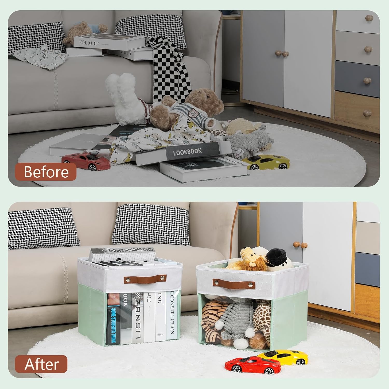 - 【DURABLE】We use durable and sturdy cardboard to support the frame structure of the decorative cloth bins for cube storage, which reduces the possibility of being crushed, and also keeps thecubby storage organizer bins standing without collapsing and deforming when it is vacant. The added carrying handles on both sides make cloth storage bin open home storage bins easy to pull out the organiser to access items at any time, and also easy to move and carry,making collapsible storage cubes more flex