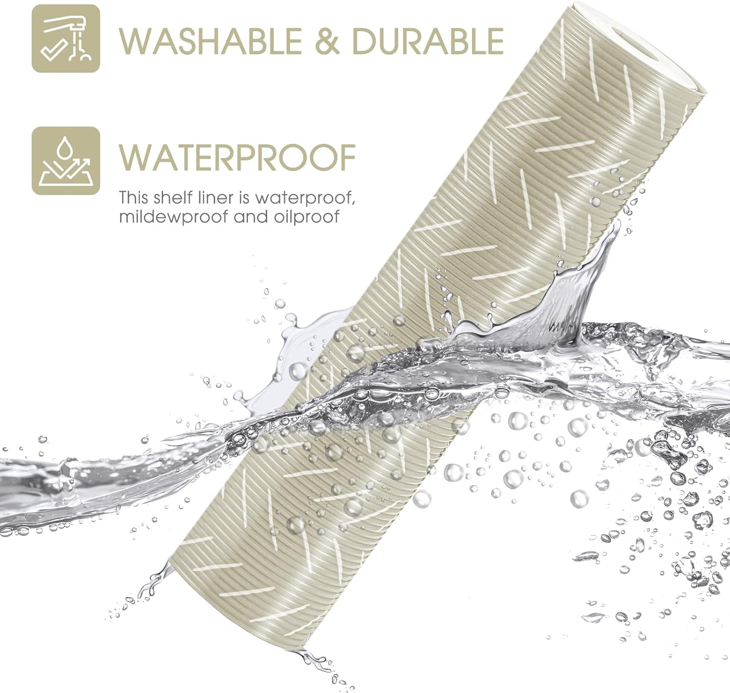 Glotoch Premium Non Slip Shelf Liner, Non Adhesive Drawer Liner, Waterproof Shelf Liners for Kitchen Cabinets, Drawer, Fridge, Wire Shelving, Pantry-12" X240", Heavy Duty, Beige Herringbone