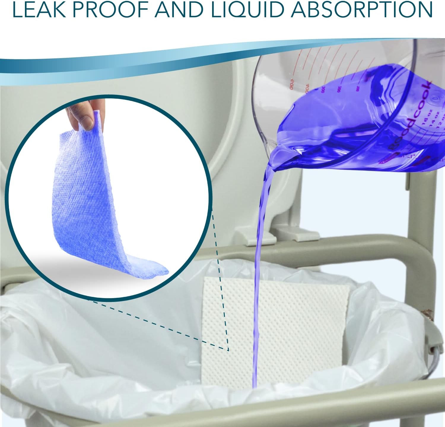 - Super Absorbent: Our convenient combo pack includes 72 commode liners and 72 absorbent pads, which are made to absorb more liquid than an average adult creates in one sitting. The Liners fit all standard-sized commode toilet buckets and are easily disposable.