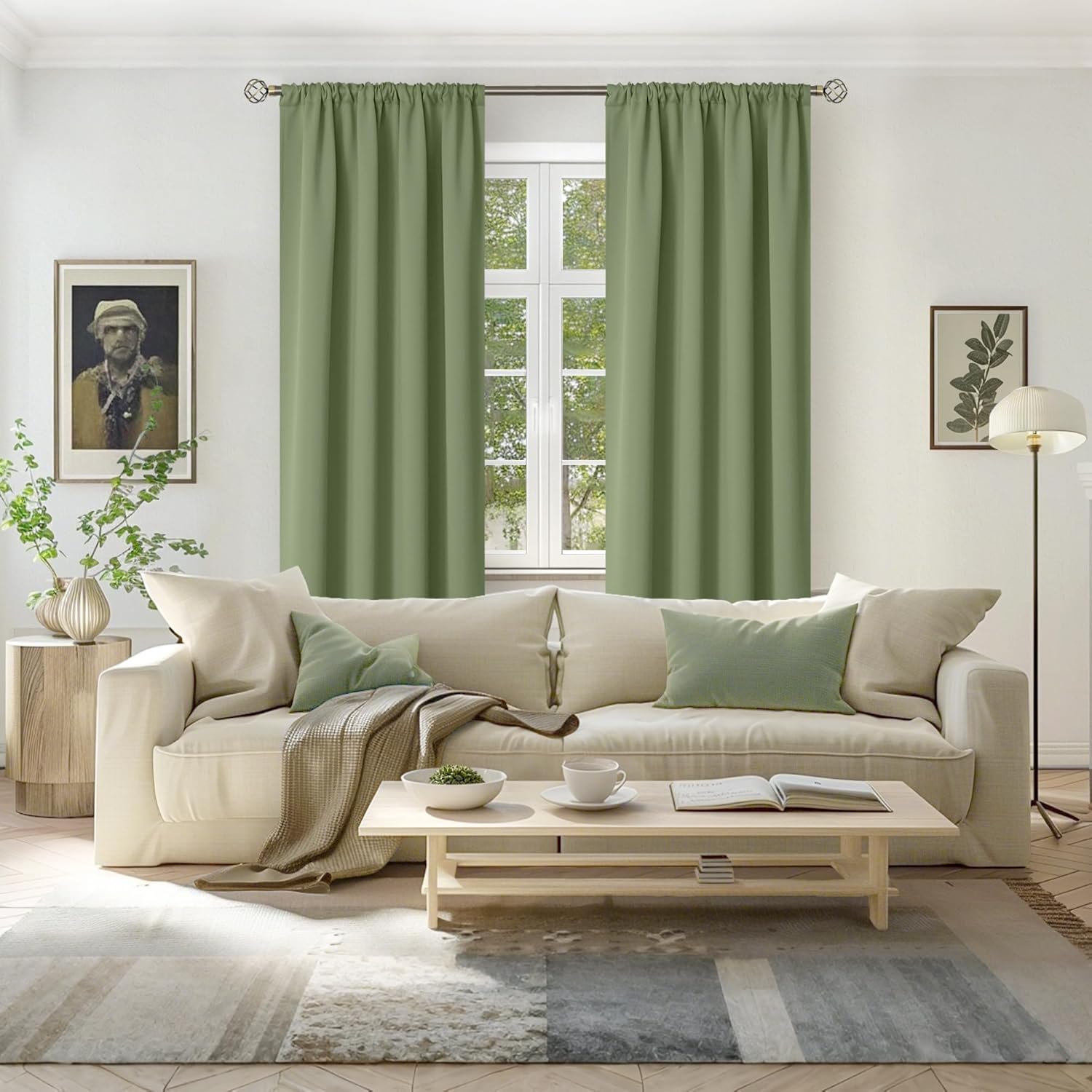 - Package Includes: Set of 2 olive green blackout curtains; each panel measures 42 Inch wide by 84 Inch long.