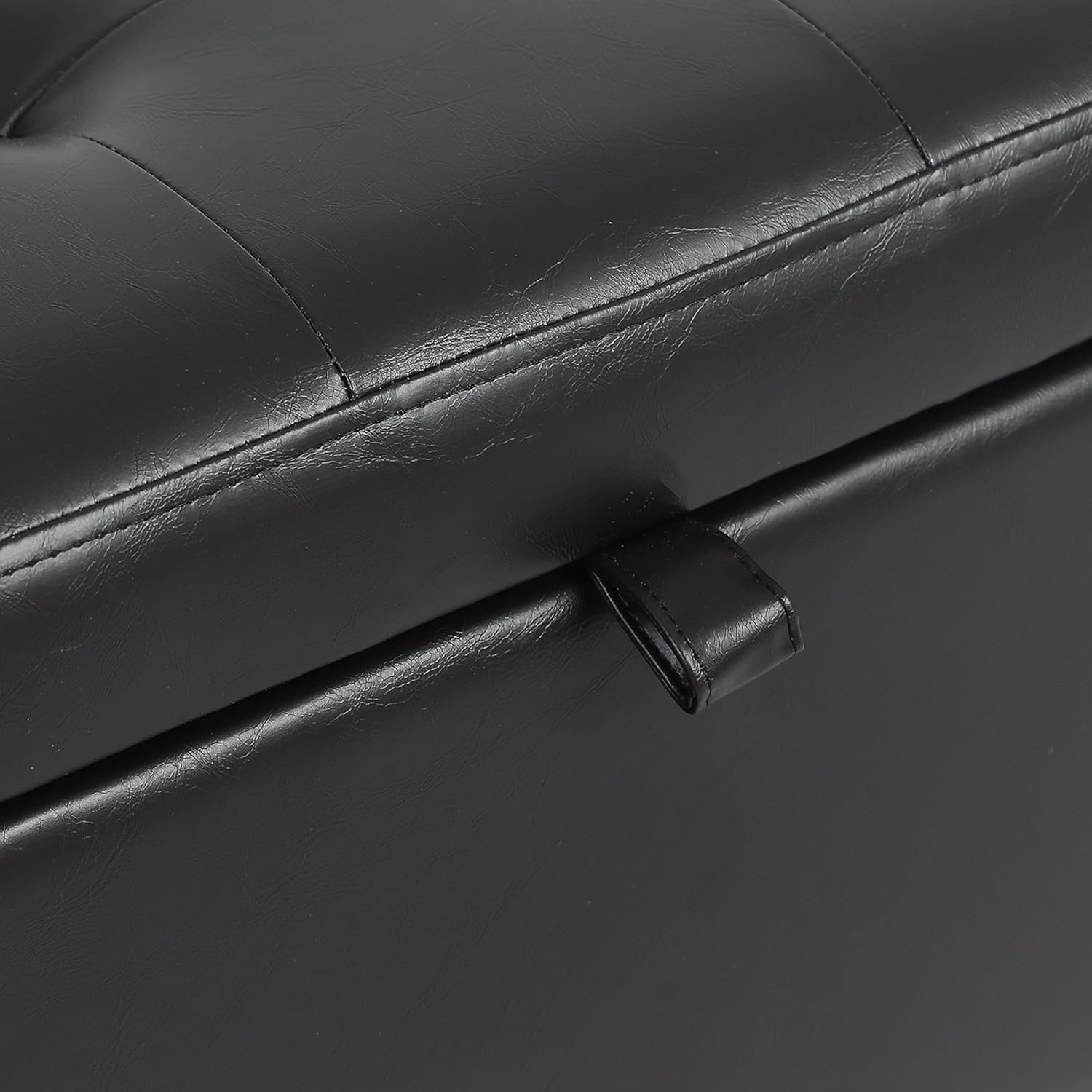 Adeco Faux Leather Storage Ottoman with Hinged Lid, 14 Inch High Black Square Cube Foot Stool with Storage, Upholstered Vanity Stool with Solid Wood Legs for Living Room, Bedroom, Dorm