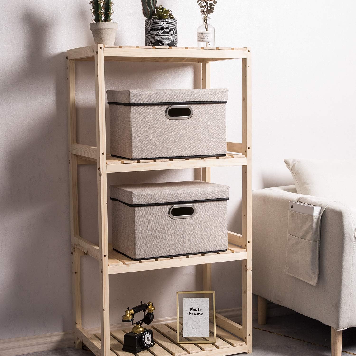 PRANDOM Foldable Storage Bin with Lid [1-Pack] Linen Fabric Decorative Storage Box Organizer Container Basket Cube with Handles Divider for Closet Office Living Room Light Grey(14.9x9.8x9.8)