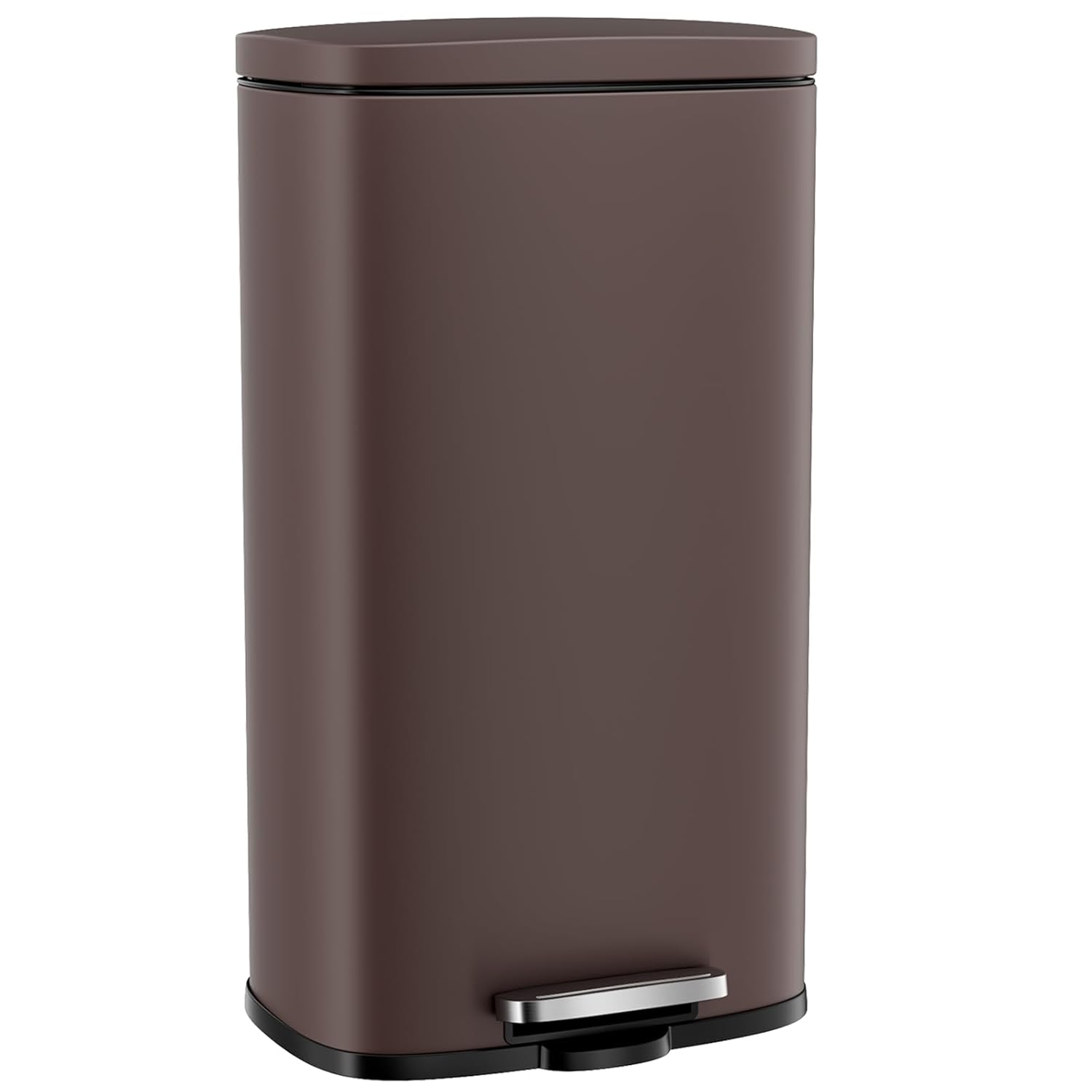 Arlopu 8 Gallon Step Trash Can, Stainless Steel Garbage Bin, Soft-Close Rubbish Bin with Removable Plastic Inner Bucket, Fingerprint-Proof, Lid Dustbin, Suit for Kitchen Home (Brown, 30L)