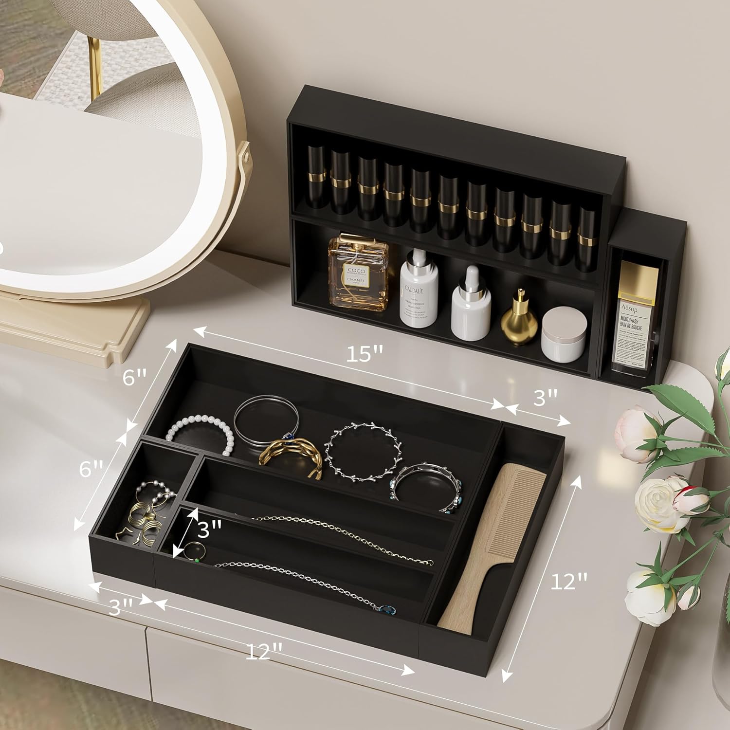 - Multi-functional Drawer Organizer Tray - Say goodbye to having multiple messy junk drawers and always having to dig deep for any needed items. Used in kitchen to organize spoons, spatulas, whisks, wine stoppers, bottle openers, bag clips, spices, baking utensils and other kitchen gadgets; used as bathroom vanity tray to keep perfume, candle, jewelry, trinket, watch, key neatly; or used as desk organizers to accommodate your desk supplies, like your pens, business cards, post-its, paper clips etc. It will make a great addition in your home or office