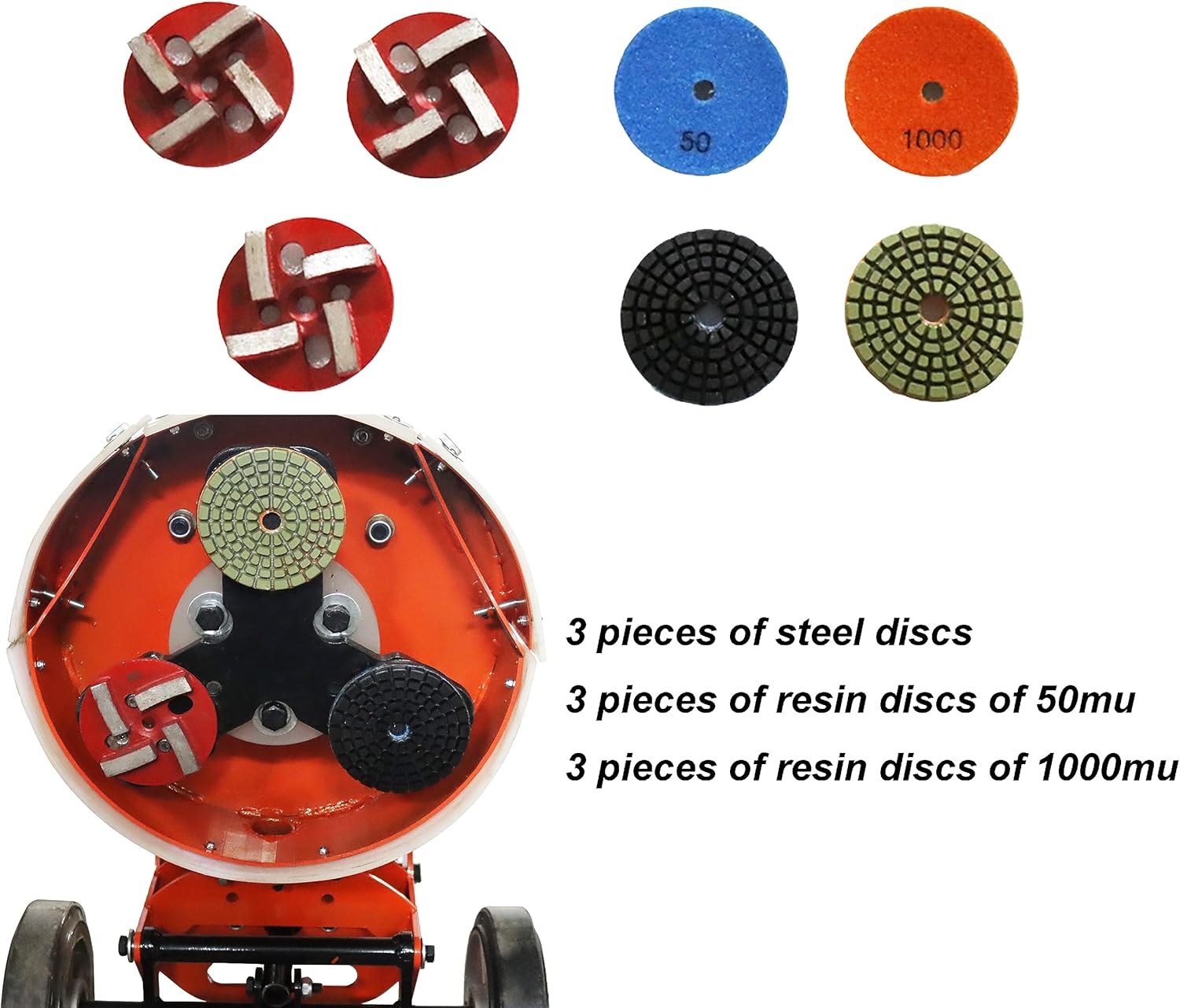 - With Powerful Motor:The 220V 2.2KW pure copper motor with rotating speed of 280rpm, which is efficient and durable. Note: when using, first lift the machine head off the ground,and then turn on the switch. After the grinding chassis rotates, gently place it on the ground.
