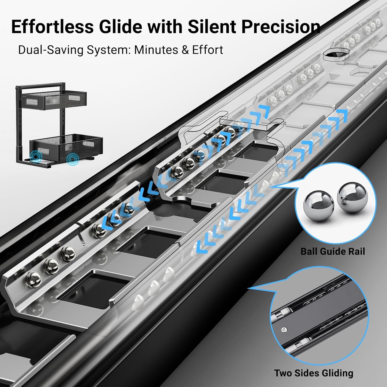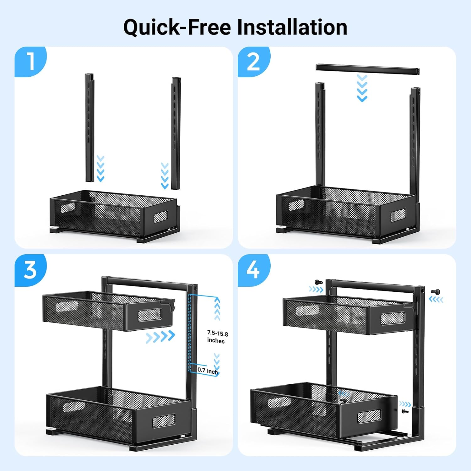 Under Sink Organizer, Metal Under Sink Organizers and Storage, Slide Out Pull Out Cabinet Organizer for Kitchen, Bathroom, Pantry, Laundry, Study, Black
