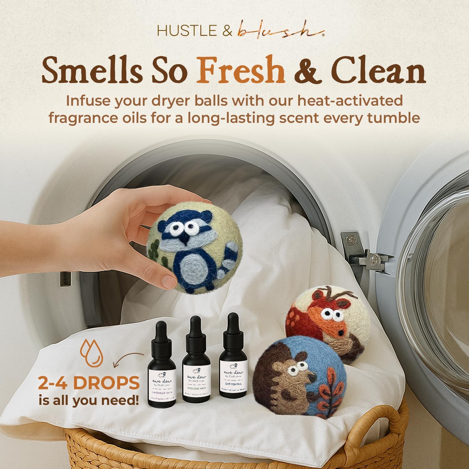 - ADORABLE DESIGNS - A THOUGHTFUL GIFT FOR ANY OCCASION: Add a touch of whimsy to your laundry routine with our delightful set of wool dryer balls. This Hedgehog Woodland Creatures set comes with - Blue Raccoon, Brown Porcupine, Brown Bear, and Red Deer Fawn. Beautifully packaged in a reusable linen bag, our wool dryer balls are great for gifting. Whether it’s for a baby shower, housewarming, or just because, our cute wool dryer balls are a gift everyone will love!