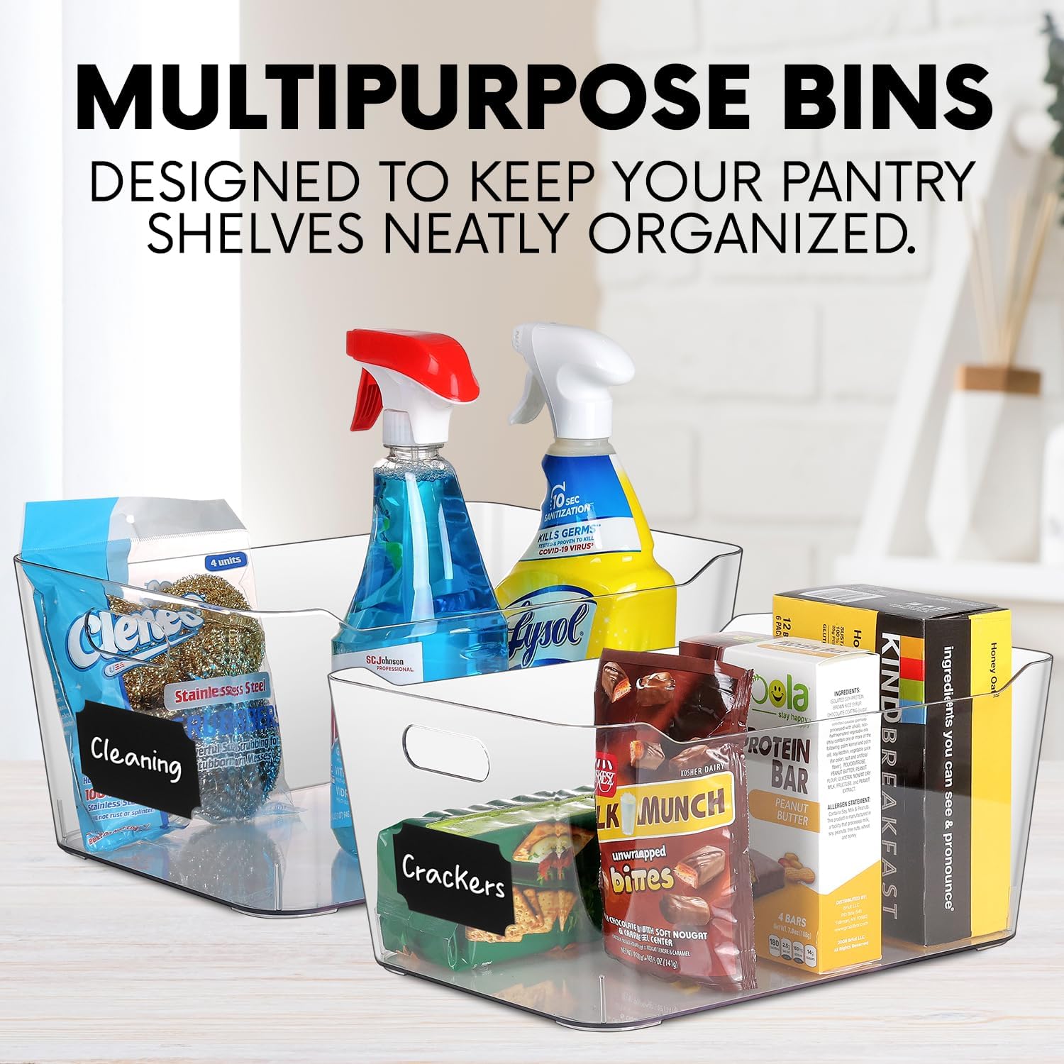 - YOU WON'T FIND A MORE VERSATILE SET OF BINS: You can use these large clear plastic storage containers for organizing any space in and around your home – the kitchen, cabinets, closets, pantries, bedroom, dining room, laundry room, nursery, garage, kids toy room, under sink organizers and more.