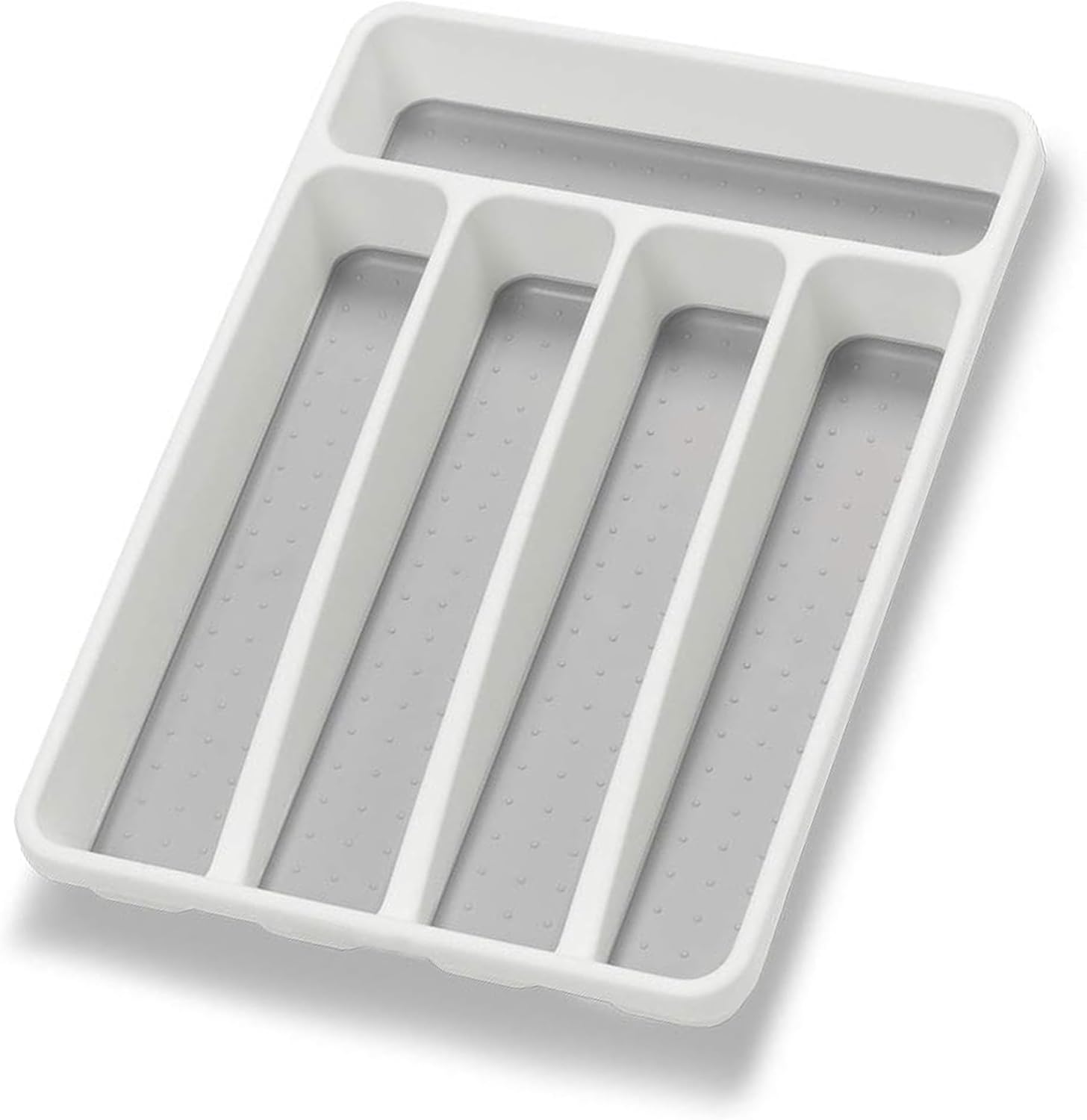 Silverware Organizer Utenisl Organizer Holder Kitchen Drawer Organizer Plastic Silverware Tray for Drawer Flatware Organizer 5 Compartment White