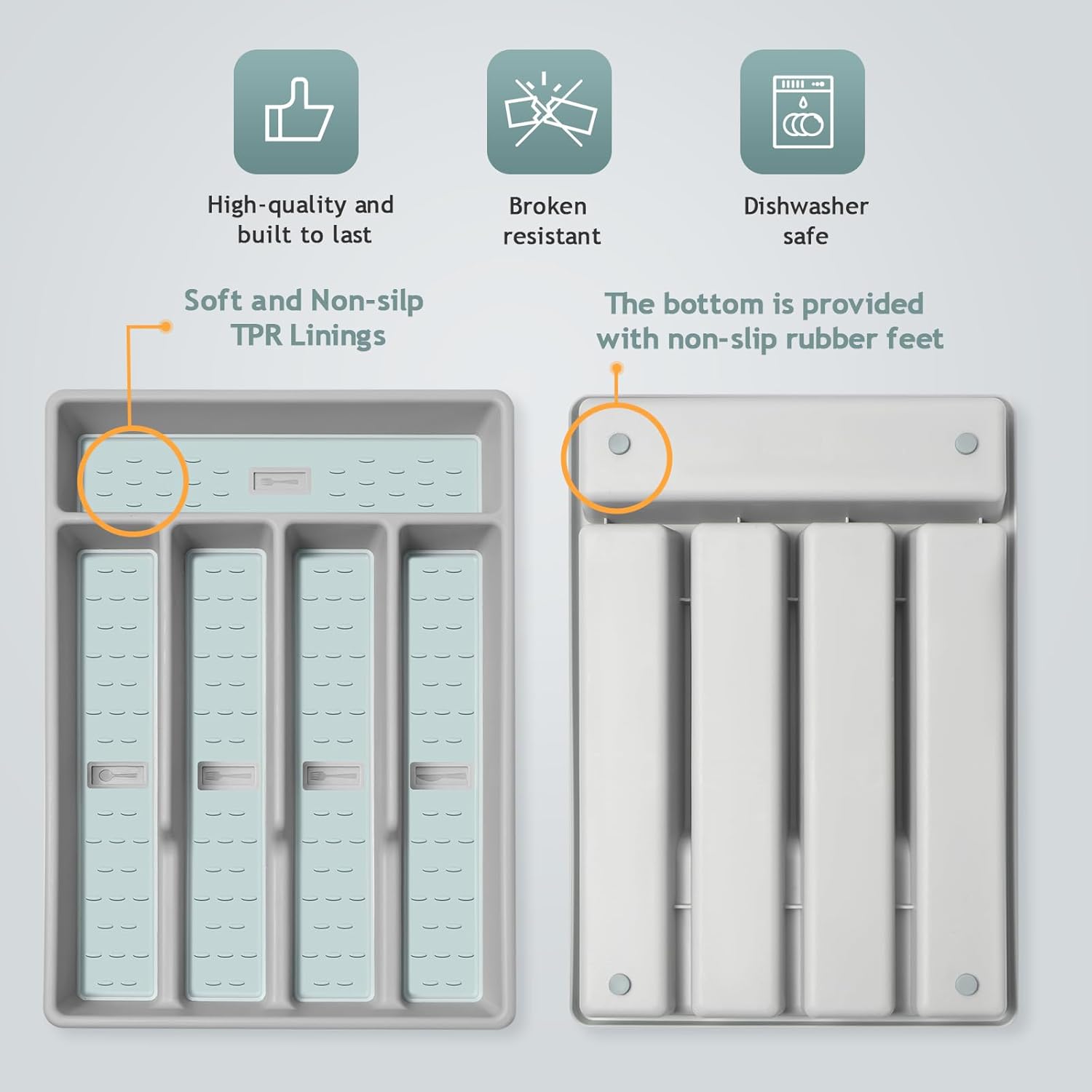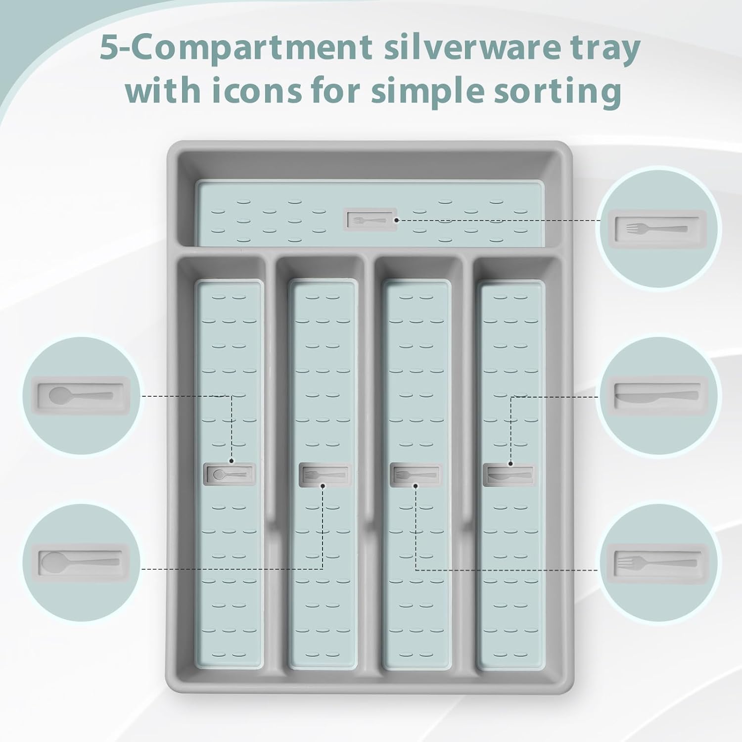 Silverware Organizer with Cutlery Icons,Silverware Tray for Kitchen Drawer,Flatware Tableware Cultery Drawer Organizer Utensil Organizer with Non-slip TPR Linings,Kitchen Organization Essentials