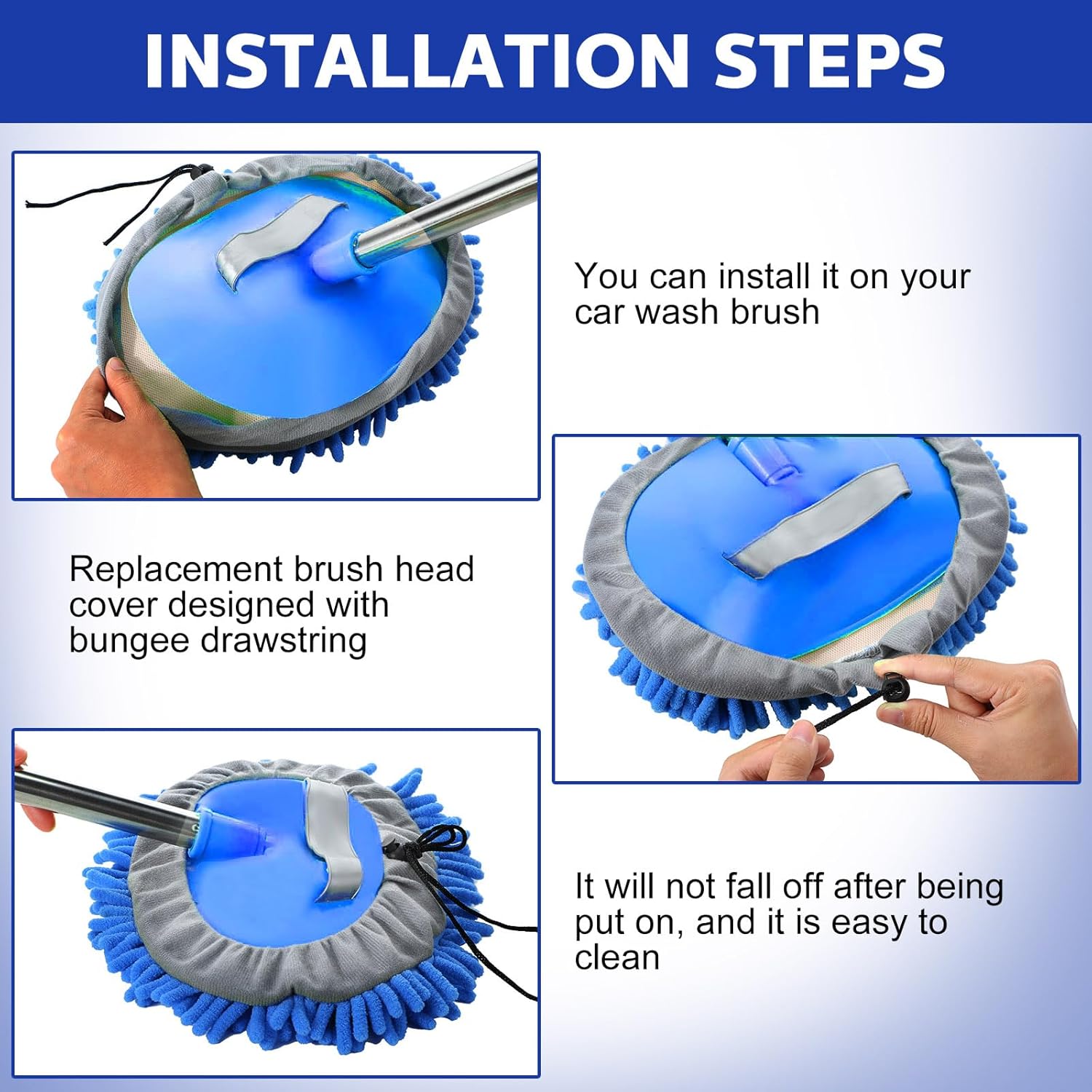 - Easy To Use and Replace: our car wash accessories are designed to be easily installed and removed, saving you valuable time and energy; With a convenient drawstring design, they can be quickly swapped out when it's time to change, bringing convenience and pleasant to your life