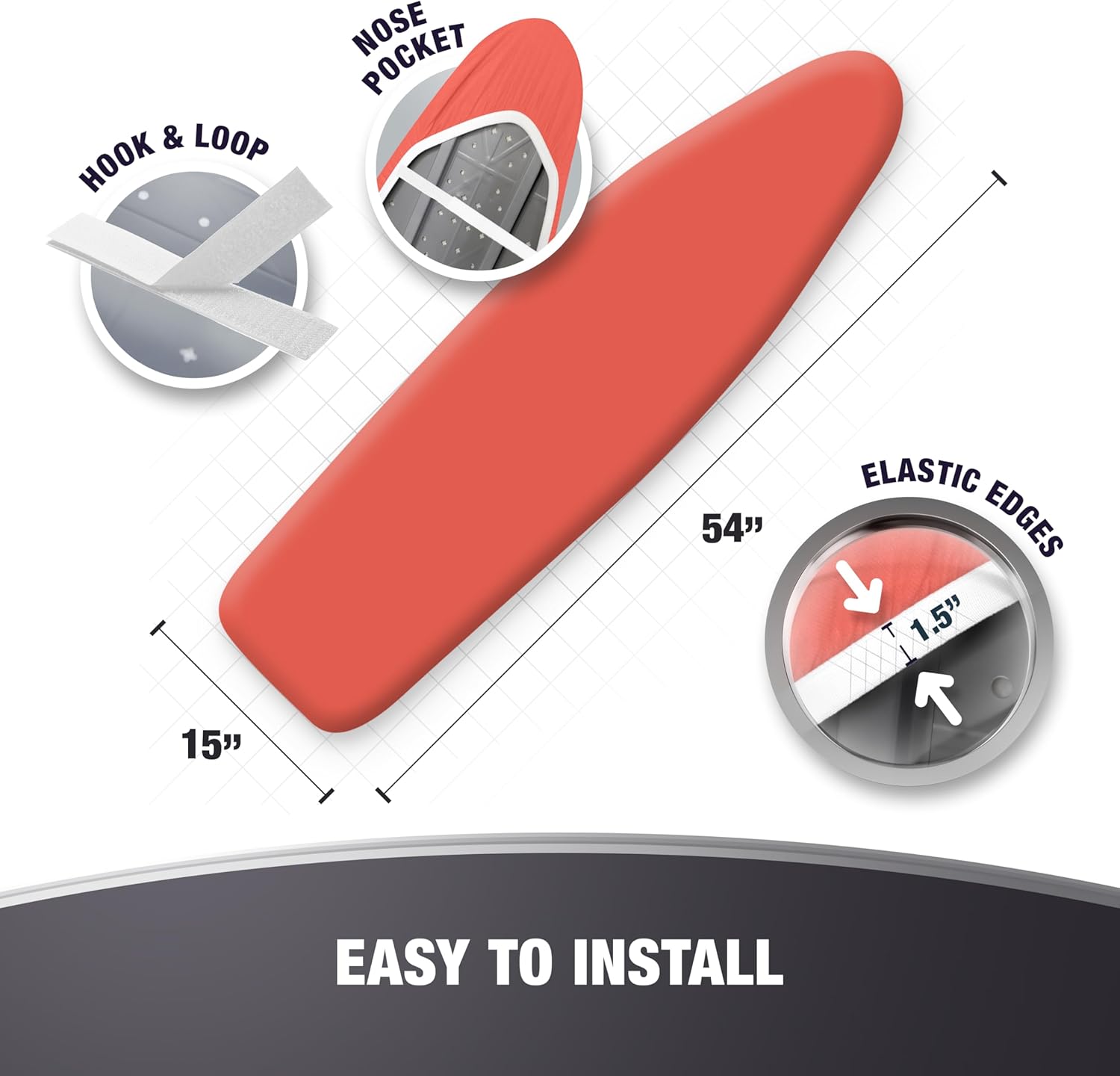 - EASILY FITS STANDARD 15x54 SIZE BOARDS: The ironing board cover can be installed very easily thanks to its durable elastic edges or adjustable drawstring tightening, strong fastener straps and sturdy nose pocket. It is designed for standart size boards in 15x54" dimensions.