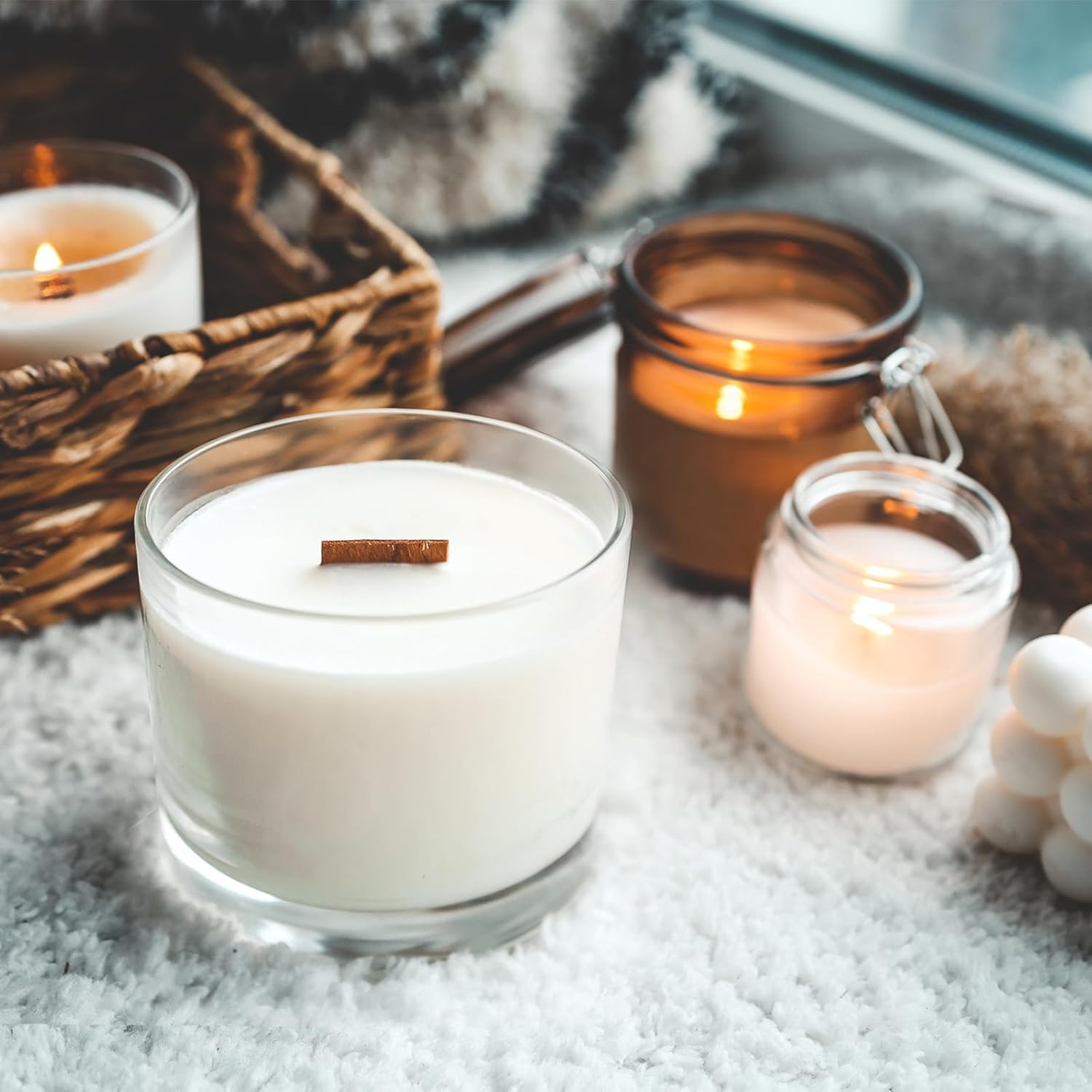 - [Glass Candle Vessel] A perfect candle container for making candles. Wood lid and glass design, stylish appearance, simple and modern, can be used as elegant home decoration, candlelight through the candle jars, create a warm family atmosphere.