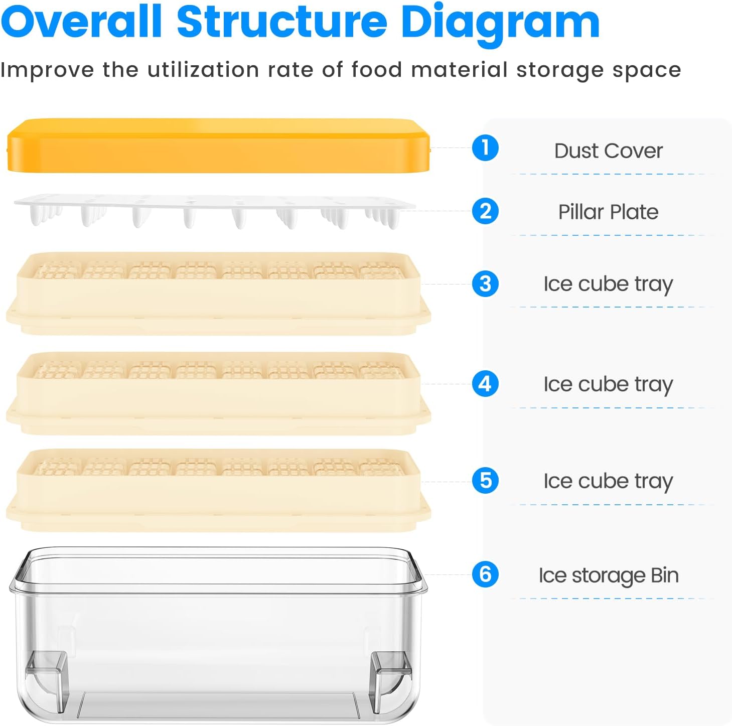 - Food Grade Material & BPA Free:This ice trays for freezer with lid and bin are made of food grade PP material, which is safe and can be frozen and used repeatedly for a long time.The ice cube tray is NOT DISHWASHER SAFE