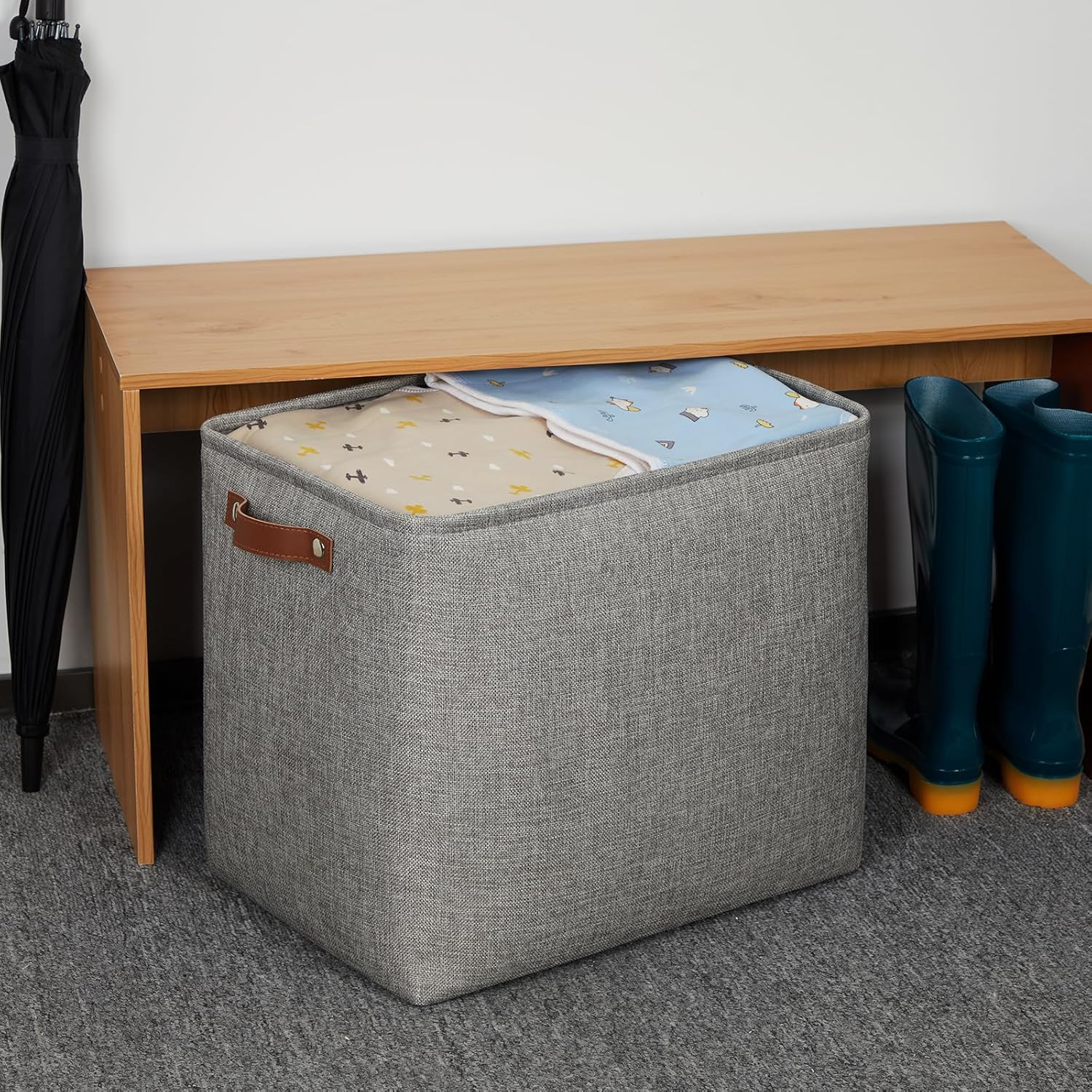 DULLEMELO Grey Storage Baskets 2 Pack Extra Large Fabric Shelf Baskets for Organizing, Closet, Clothes, Toys, Bedroom