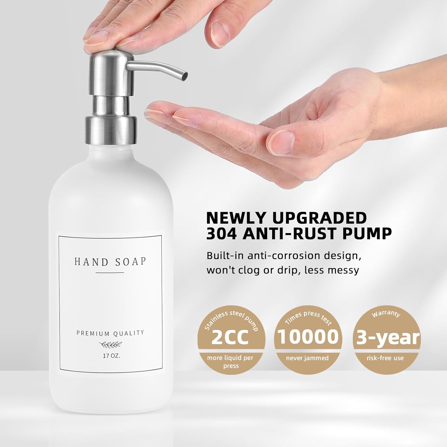 - BEST CHOICE: Our glass soap dispenser with pump packaging is thick so that you receive the product without being fragile like others, give it to yourself, a design lover or a friend, perfect for any housewarming, birthday, wedding, Mother's day or Christmas, give your kitchen or bathroom a new look, without hesitate, Give you our NO FUSS 30 DAYS PAYMENT BACK .