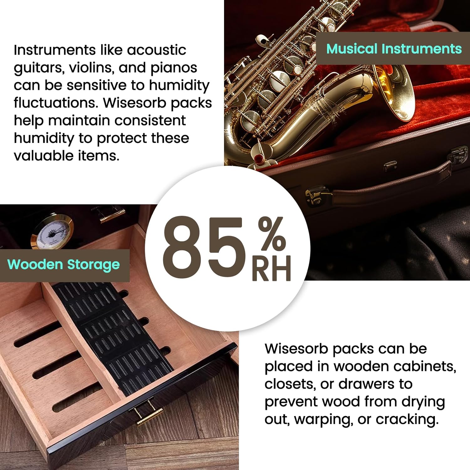 - 【Wisesorb Humidity Control Packs are Suitable for Preserving the Freshness of a Variety of Products】: Moisture packs are not limited to substances alone. They are suitable for preserving the freshness of various products, such as spices, brown sugar, coffee beans, music instrument and woodwind reeds. No matter what you store, humidity control packs work tirelessly to maintain the proper humidity level.