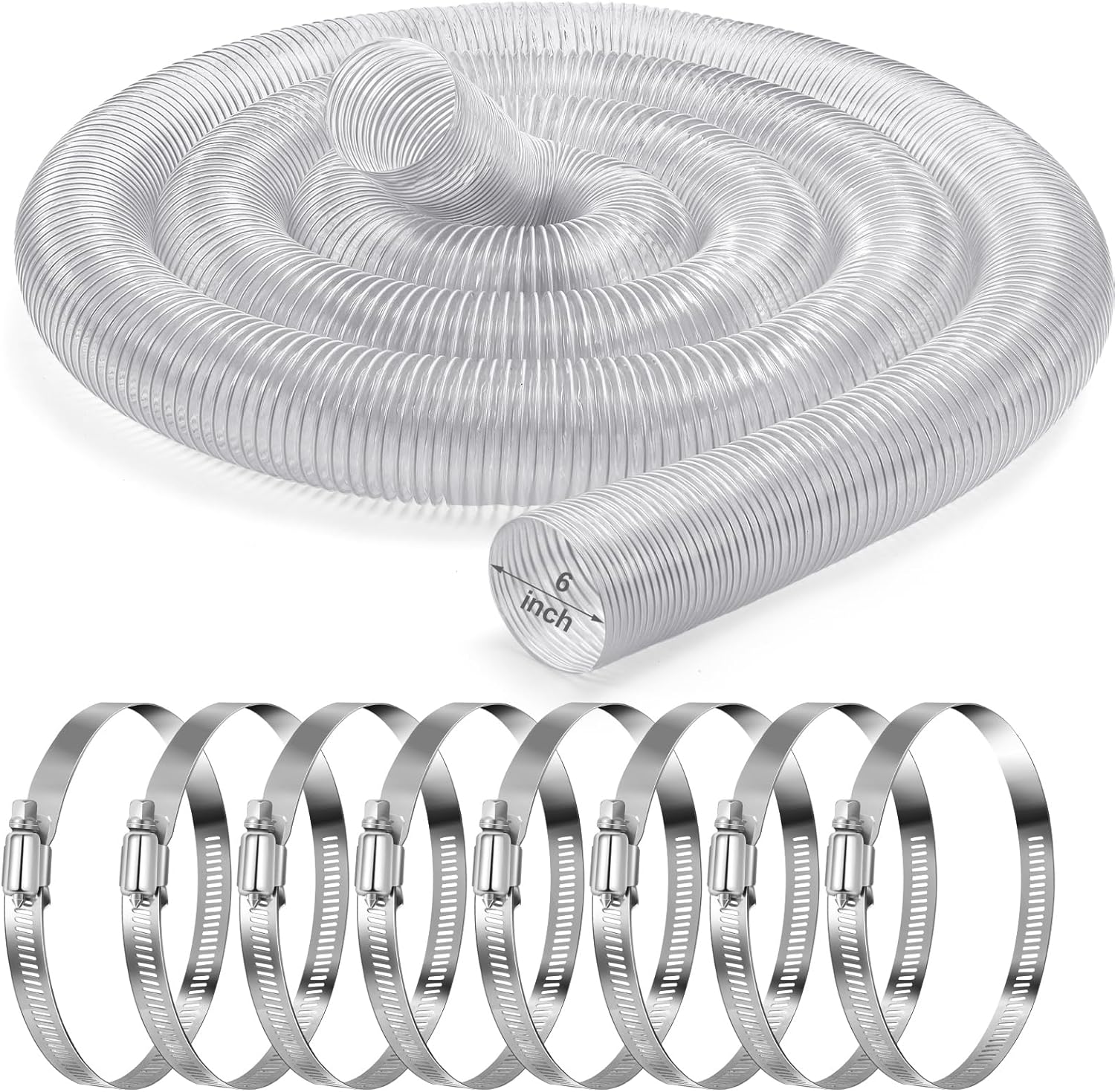 6 Inches 30 ft PVC Dust Collection Hose with Stainless Steel Clamps Set Flexible Clear Vacuum Puncture Resistant Fume Hose for Vacuums Cleaner Fume Dust Collection System (White)