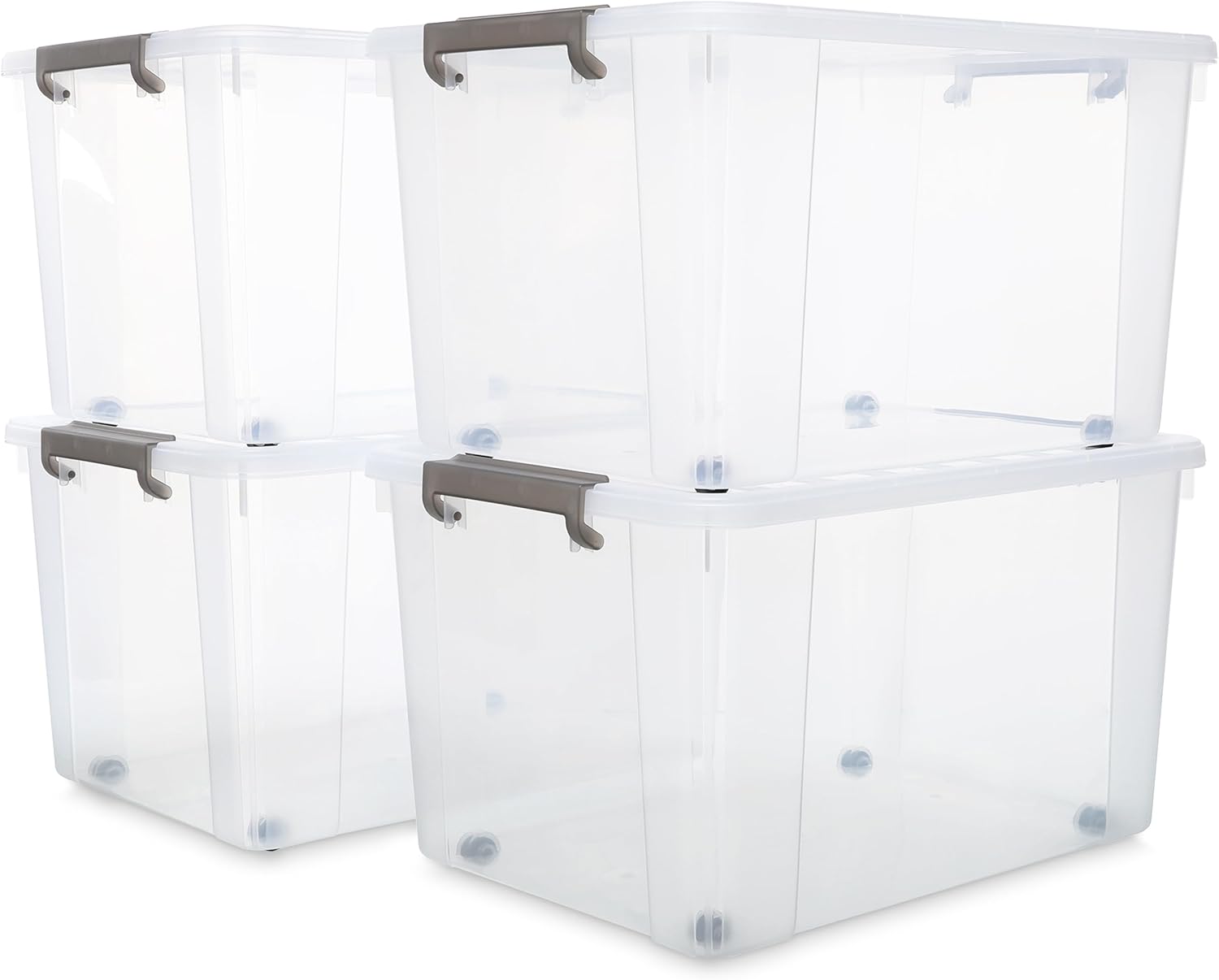 Citylife 69 QT Plastic Storage Bins with Latching Lids Stackable Storage Containers for Organizing Large Clear Storage Box for Garage, Closet, Kitchen, 4 Packs