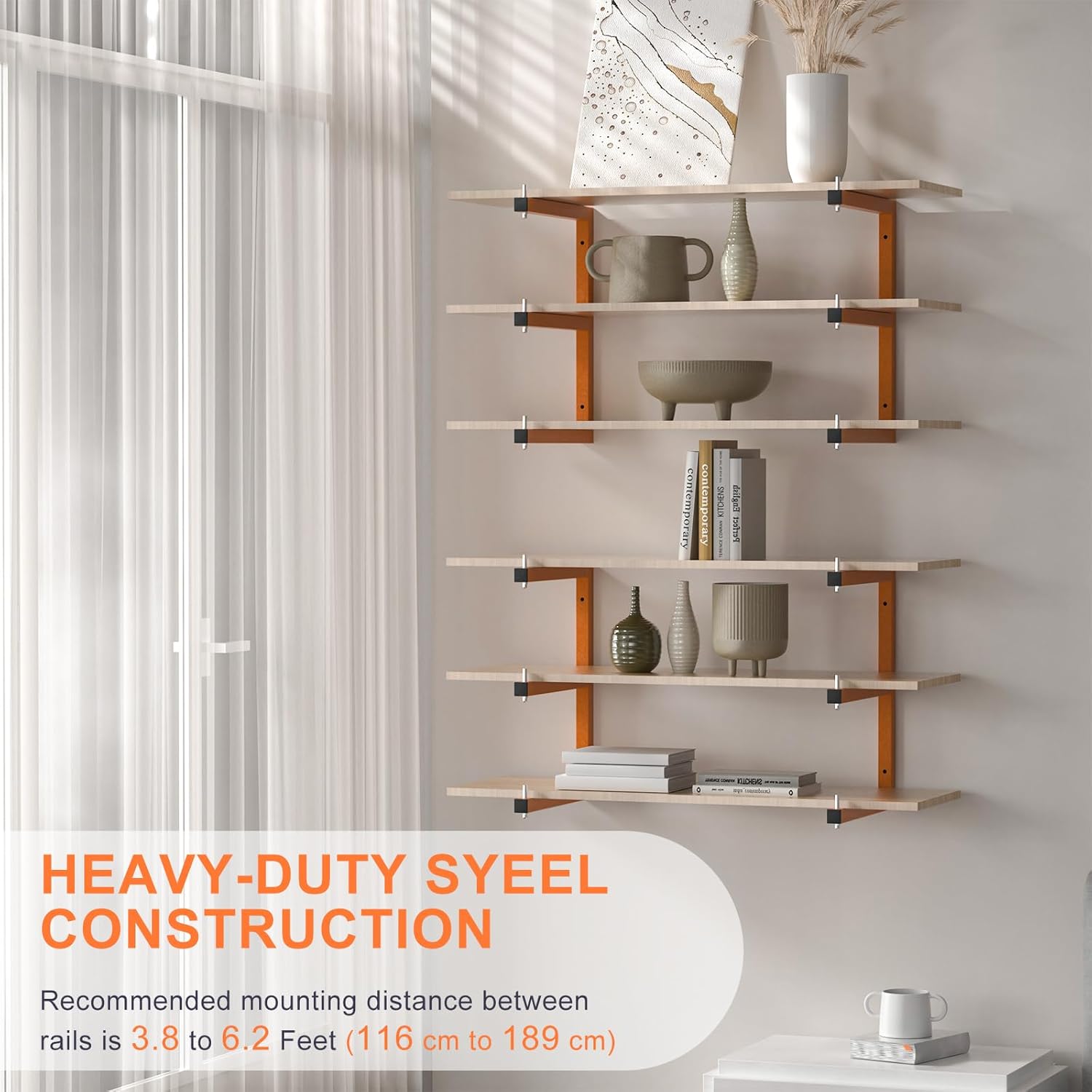 - 【 6-Level Wall-Mounted Wood Storage Rack 】 Lumber storage rack for organization garage are intricately welded industrially and come complete with drywall anchors and high-strength screw kits. Lumber storage rack orange arms are 13.11 inches long. Suitable for various walls, such as concrete walls, wooden walls, red brick walls, etc.