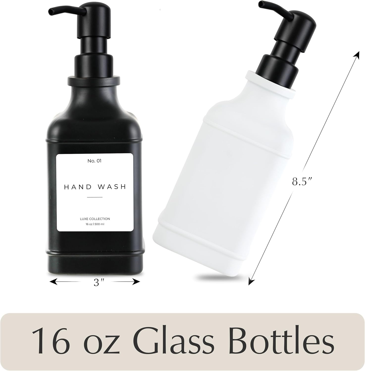 - ✅ PREMIUM QUALITY THAT LASTS: Designed to complement any space, these 16 oz glass soap dispensers are perfect for hand soap, dish soap, lotion, or shampoo. Ideal for sinks in your kitchen, bathroom, laundry room, or guest bath. Unlike dispensers that peel or break down, our bottles are made from thick, durable glass that resists wear and looks elegant on any countertop.