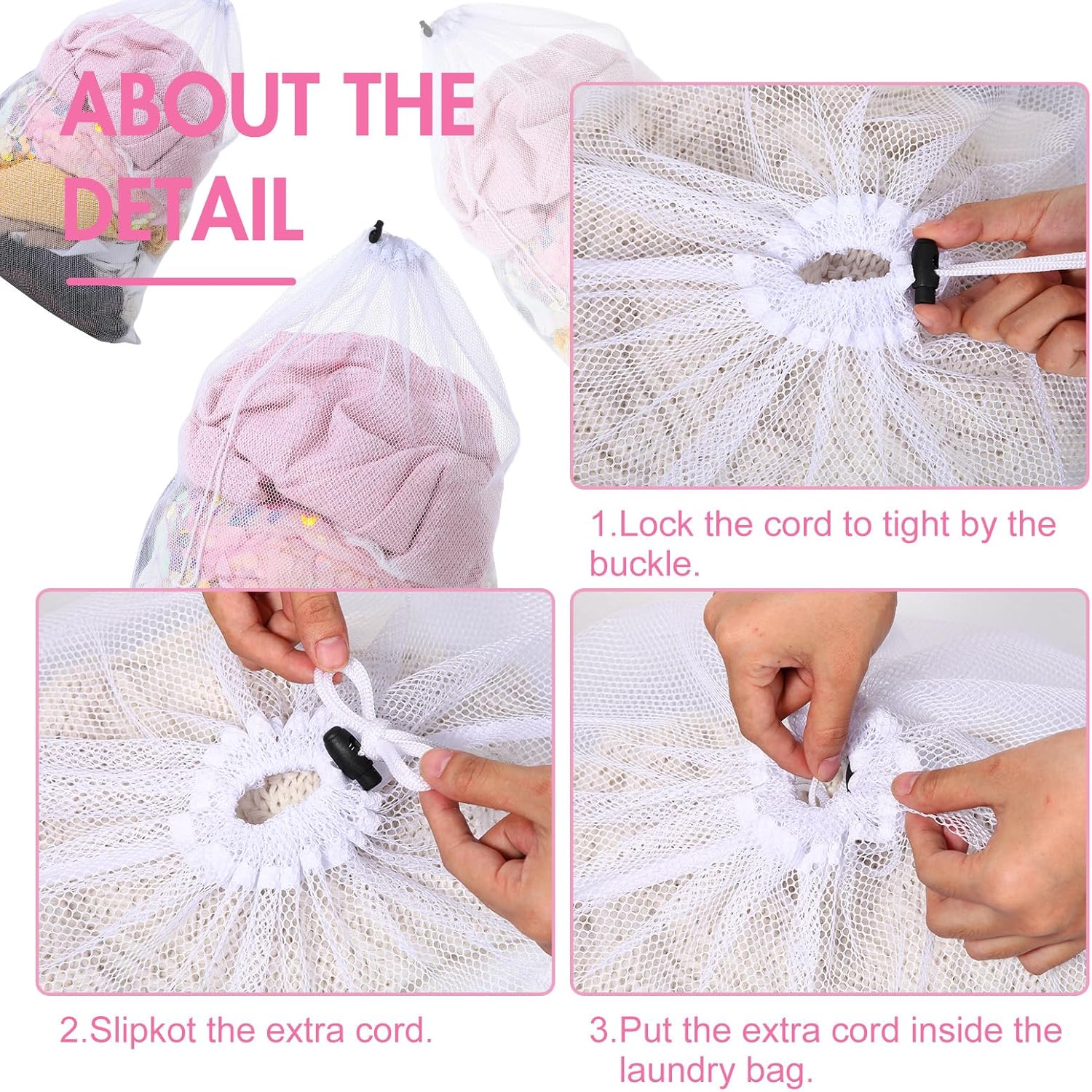 - Drawstring Locking Closure: the mesh bag has a locking buckle and drawstring buckle to prevent overflow; If you are using them as a laundry bag, tuck the buttons inside the bag to prevent the drawstring from loosening in the washing machine