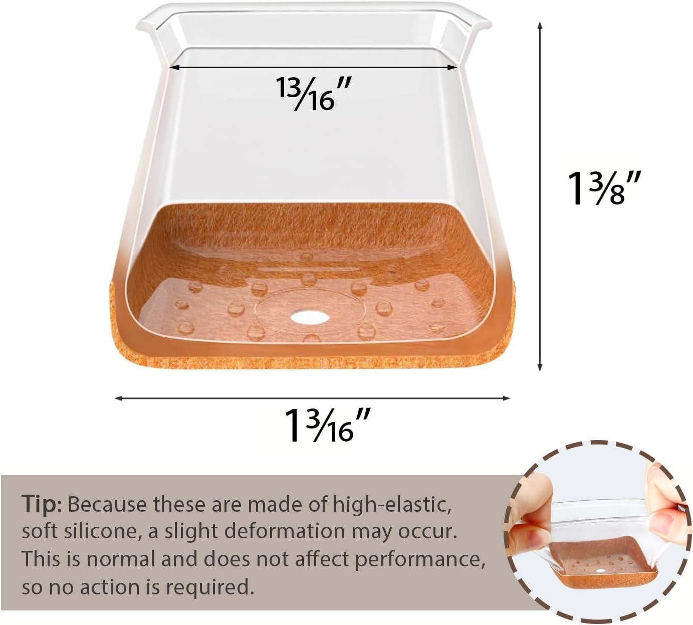 20 Pcs Chair Leg Floor Protectors for Hardwood Floors, Clear Rubber Furniture Sliders with Felt, Silicone Furniture Leg Caps Covers (Fit Square Diameter:13/16" to 1")