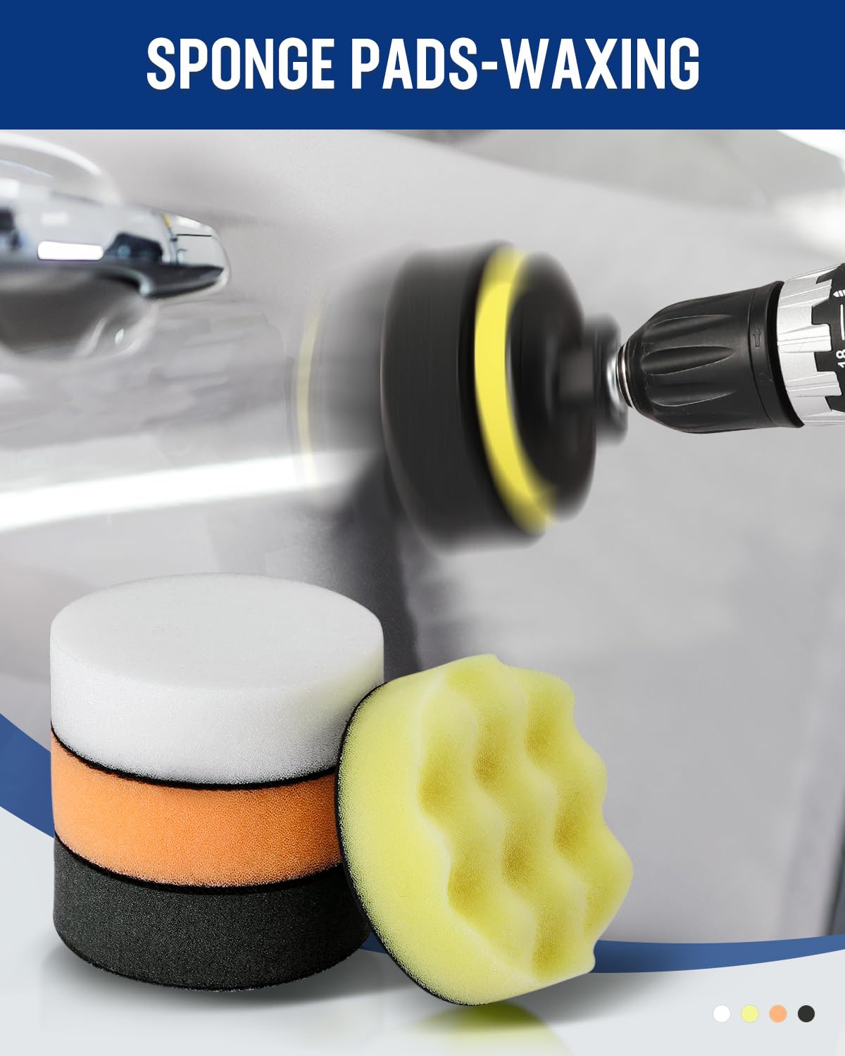 - Comprehensive Needs Coverage: With 5 different stiffness levels, our pads cater to all your polishing requirements. Orange pads excel at removing scratches and defects, while yellow pads handle light oxidation and swirls on light-colored cars. White/blue pads moderate polishing on dark cars. Black pads deliver a super fine finish for ultra-fine polishes and waxes