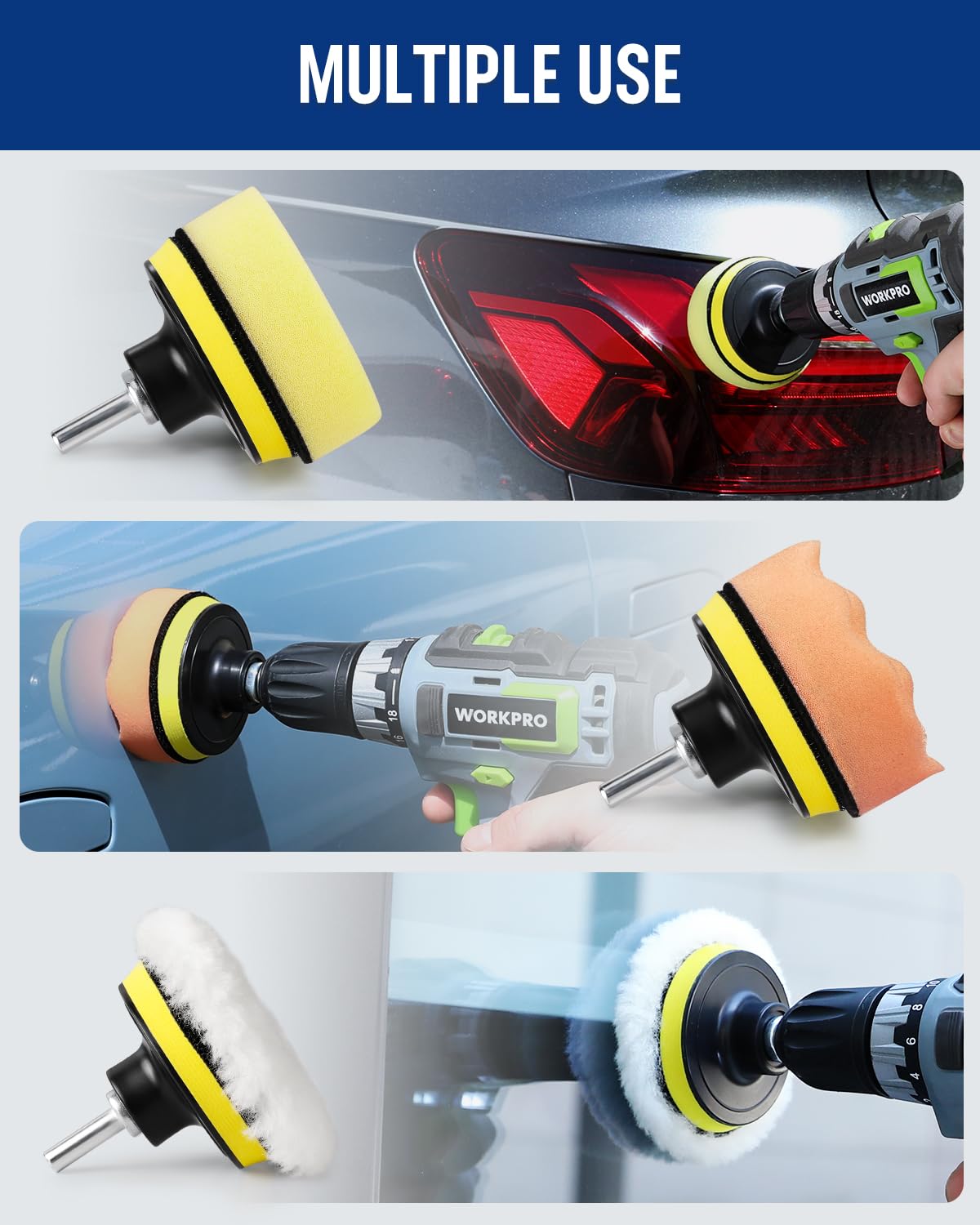 WORKPRO 3 Inch Drill Buffing Pad Kit - 11 Pcs Car Foam Polishing Pads Set, Drill Buffer Polisher Attachment Buffing Kit for Car Polishing, Waxing, Sealing Glaze