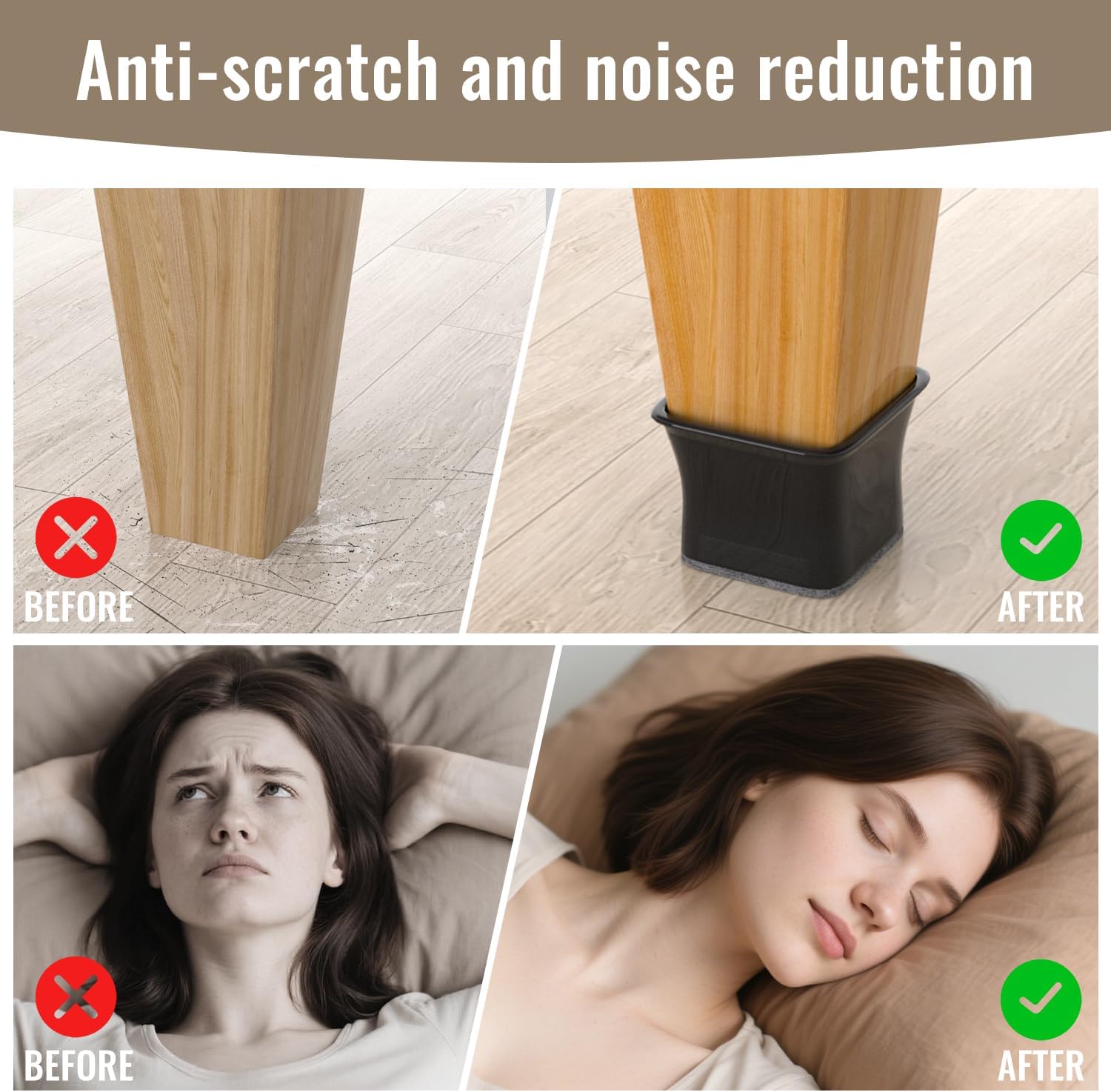 - Usage: The chair leg protectors safeguard floors from scratches, reducing noise and preventing bumps. The felt pads on the underside lessen resistance, allowing furniture to move with ease and without making a sound.They can be used for most straight and angled chair legs.