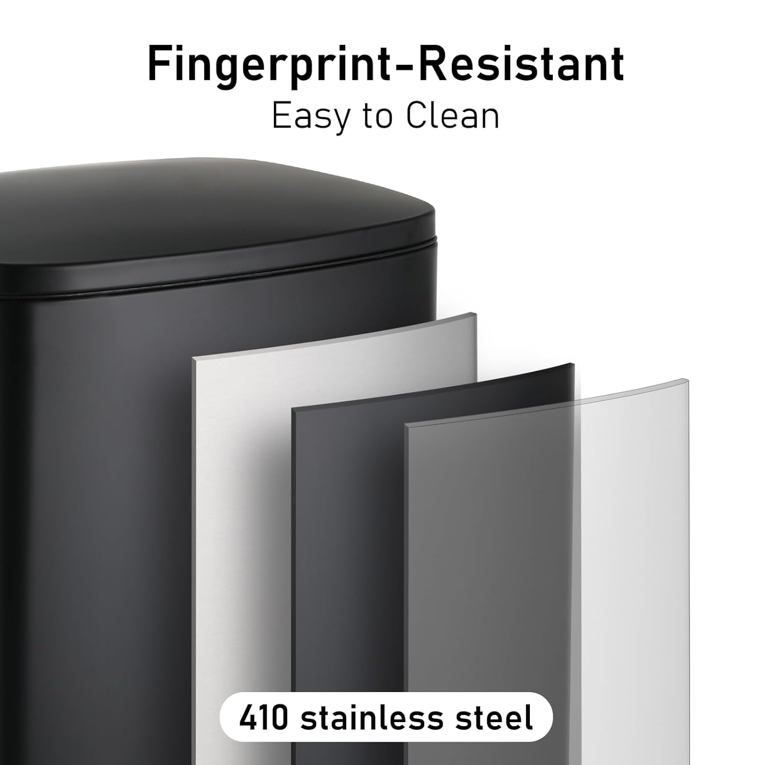 Arlopu 13.2+1.3 Gallon Step Trash Can, Stainless Steel Garbage Bin, Soft-Close Rubbish Bin with Removable Plastic Inner Bucket, Fingerprint-Proof, Lid Dustbin, for Kitchen Home (Black)