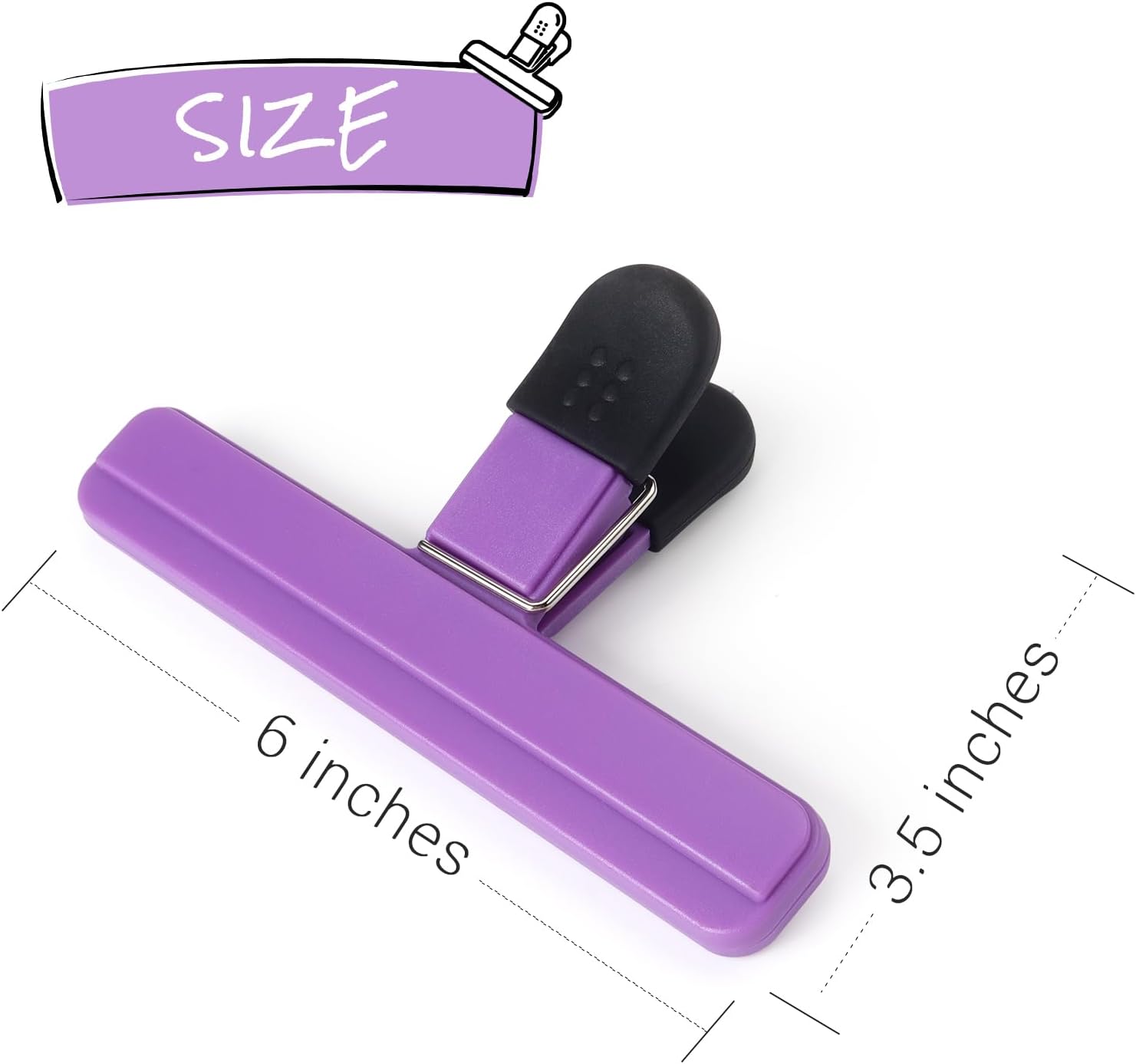 Tamaki 6 Pack Large Chip Bag Clips Assorted Color Food Bag Clips Plastic Heavy Duty Seal Grip, 6 x 3.5 Inch