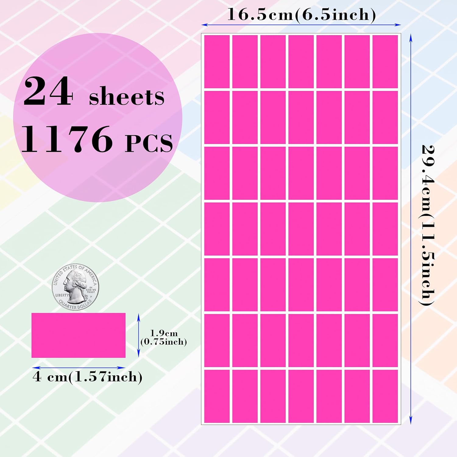 - 【Size - Rectangular Color Stickers】Each colored coding label is 1.57 inch x 0.75 inch (40mm x 19) in diameter, with a paper size of standard letter size: 11.6 x 6.5 inch. There are 24 sheets with a total of 1176 color coding labels,98 pieces per color, These stickers are perfect for coding, sealing products and envelopes, and marking moving boxes.
